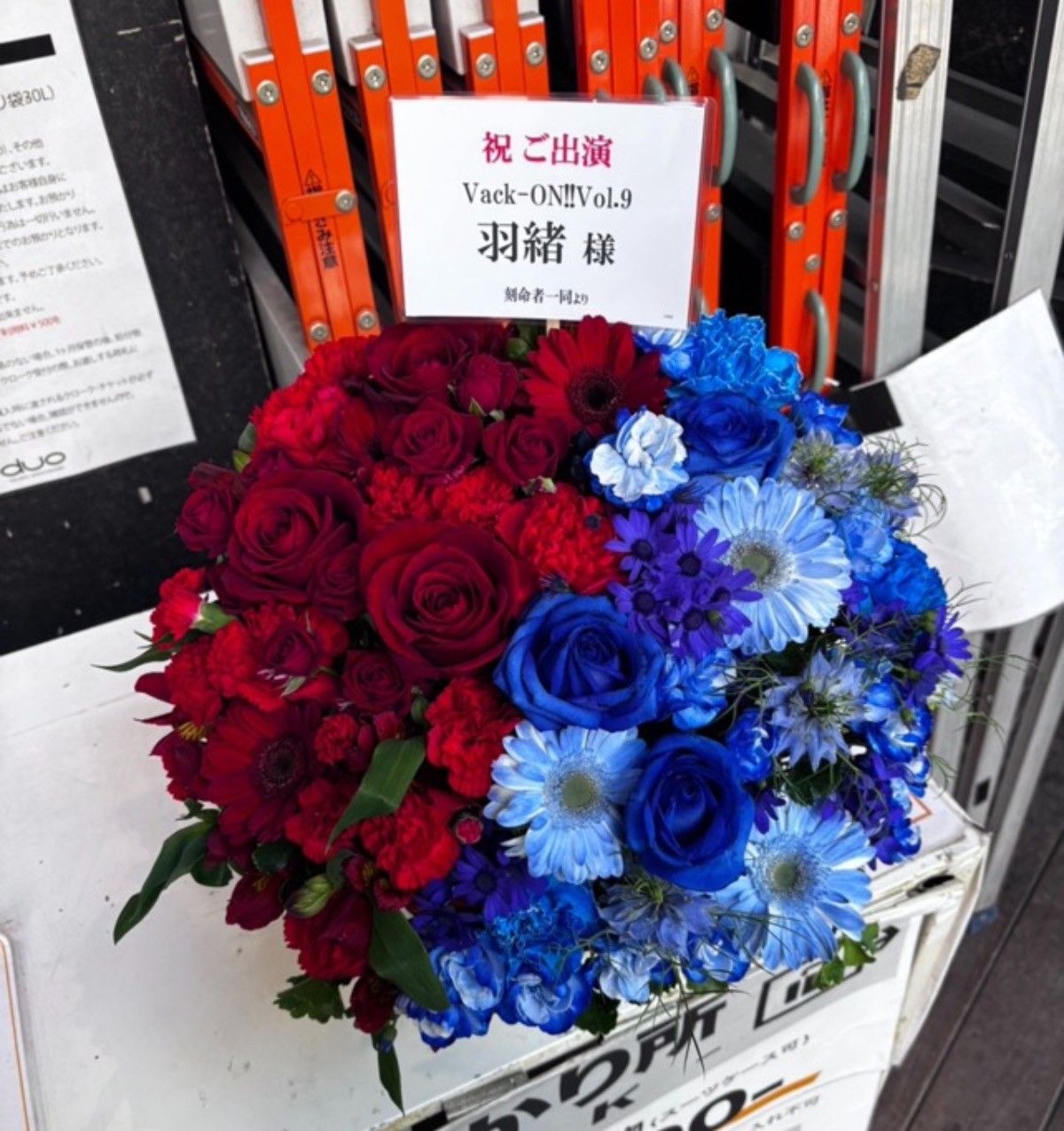 遅くなりましたが、先日26日に開催されましたVack-ON!!vol.9にご出演されました羽緒さんへ、無事にフラワースタンドをお贈りすることができました!