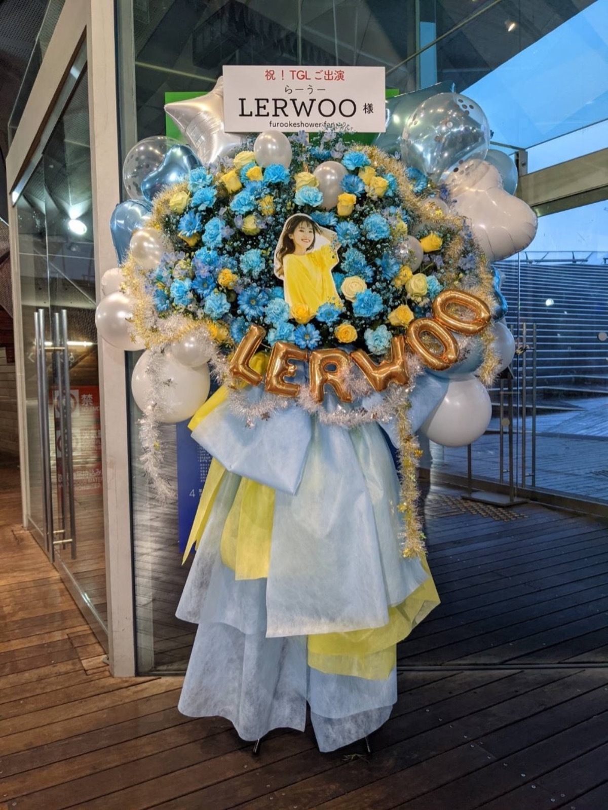 派手で華やかで上品で儚いのがすき」というらーうーのリクエストと、配信のスクショを送り、〖sweetグリッター〗を青系にした感じがいいとなり真ん中にらーうーパネルを施しました。