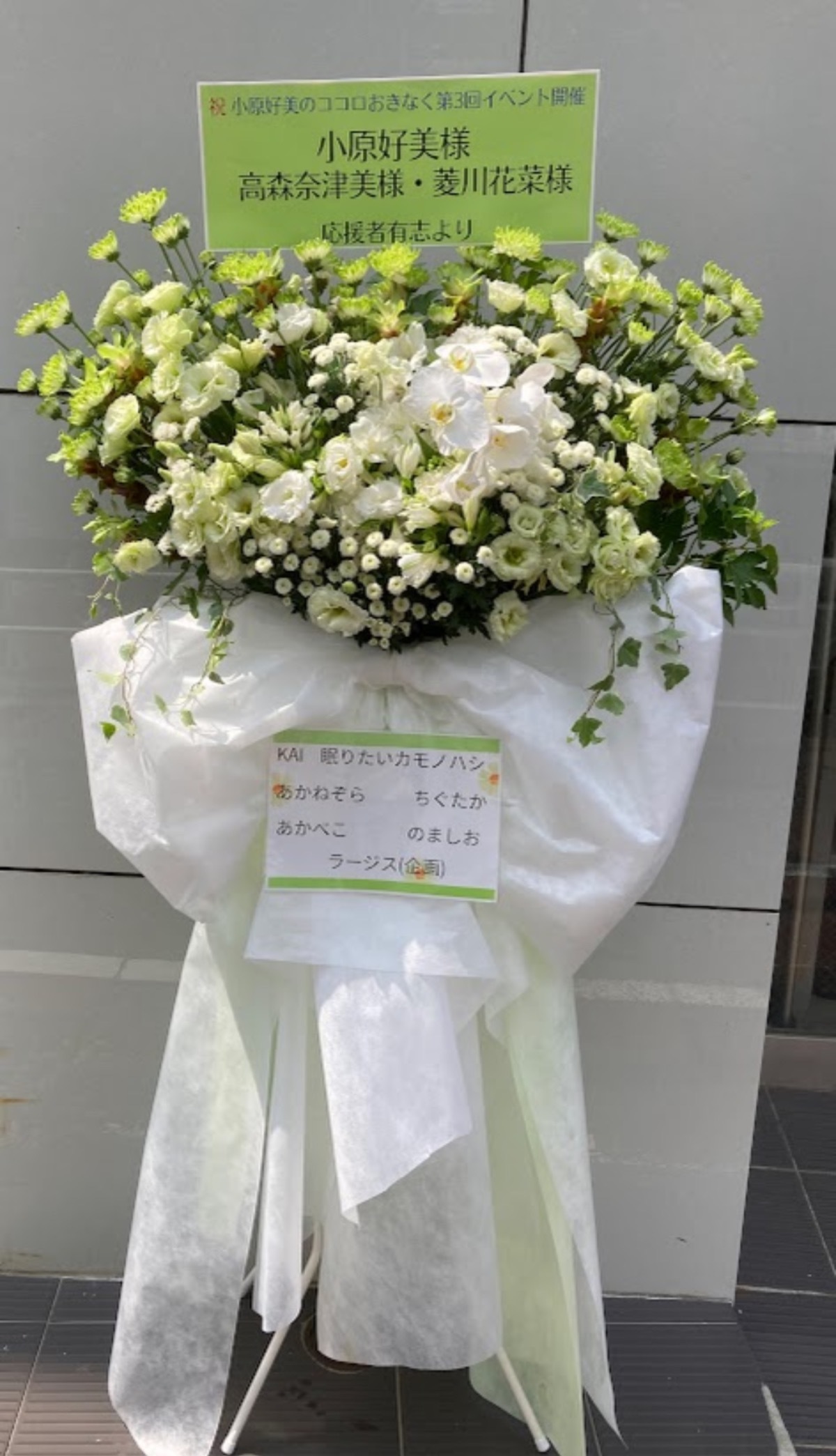 白いお花をメインに、というここちゃんの想いを込めたフラスタが完成しました!皆様、ご賛同ありがとうございました!