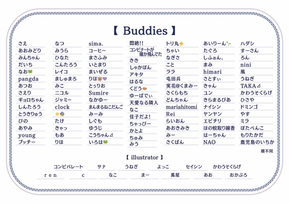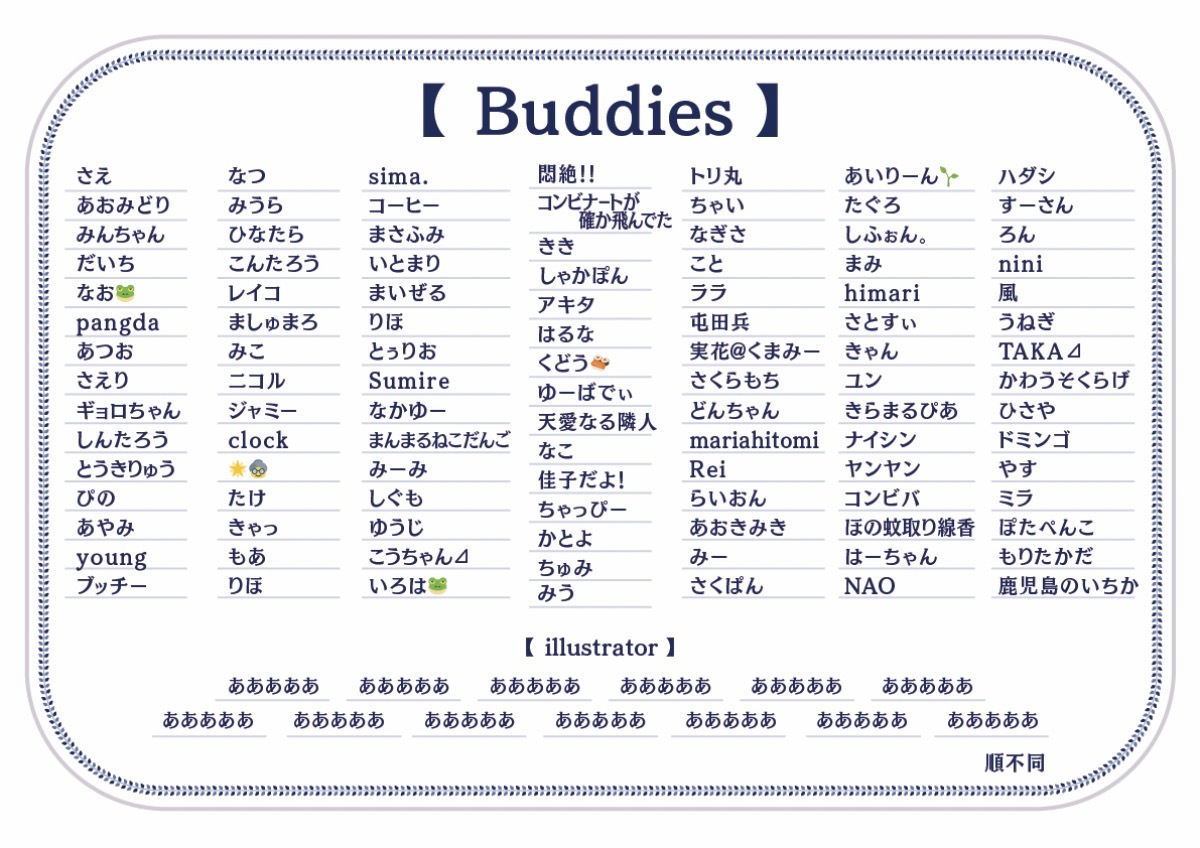 お名前が抜けている方、訂正をご希望の方はお手数をおかけしますが【11/21(金)23時59分】までに主催者(okpr@chacapocopom)までご連絡ください。