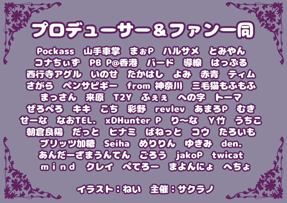 収支報告等は後日改めてまとめさせていただきます。この度は本企画にご参加くださいましてありがとうございました!!! -
