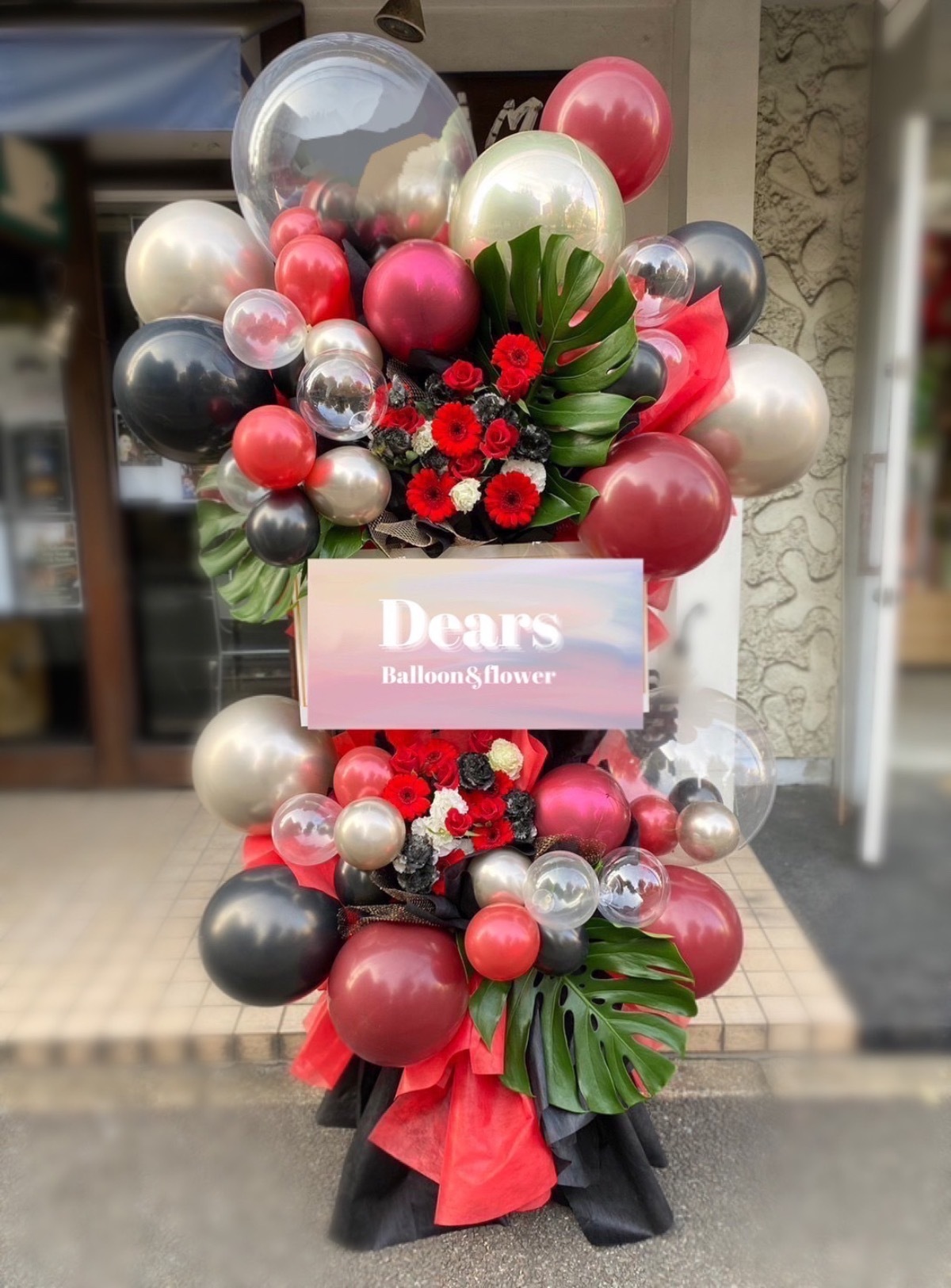 イメージ作品には生花も入っていますが、お店の方から「夏は暑さや大雨など天気が不安定な時期で予約していても希望した生花が入荷せずご希望に添えないケースが多くなる」との説明があったため、思い描いていた完成イメージとかけ離れた仕上がりにならないよう赤と黒基調のバルーンのみに変更して費用を抑えております!