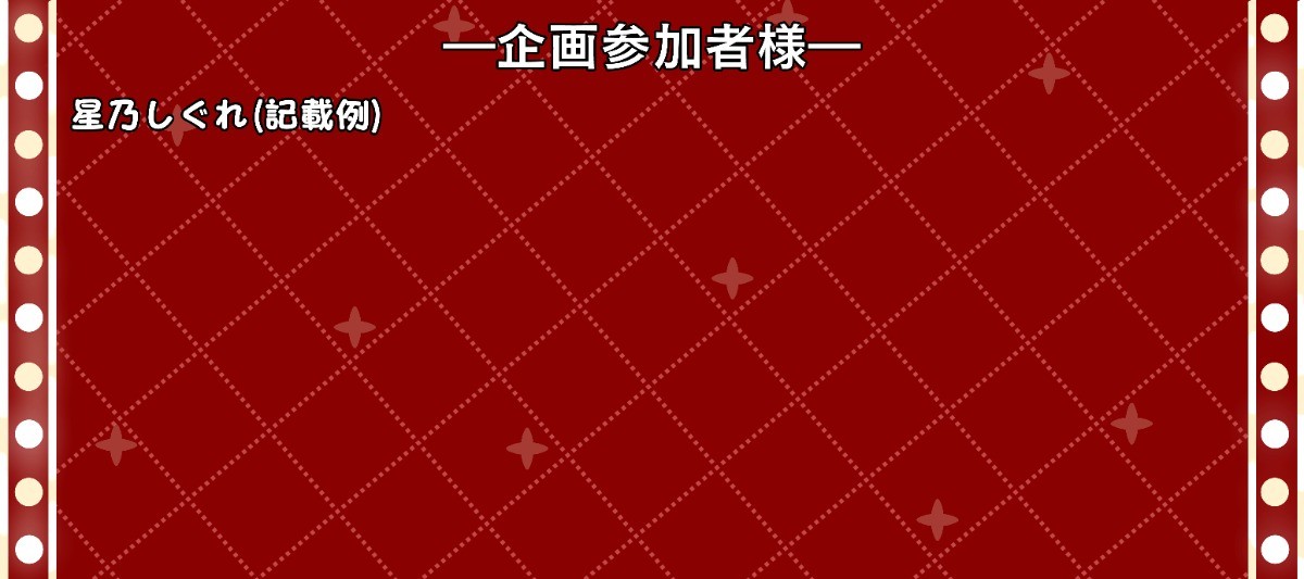 「企画参加者様」以下に参加頂いた方の匿名希望以外の方の名前を掲載させていただく予定です。 -