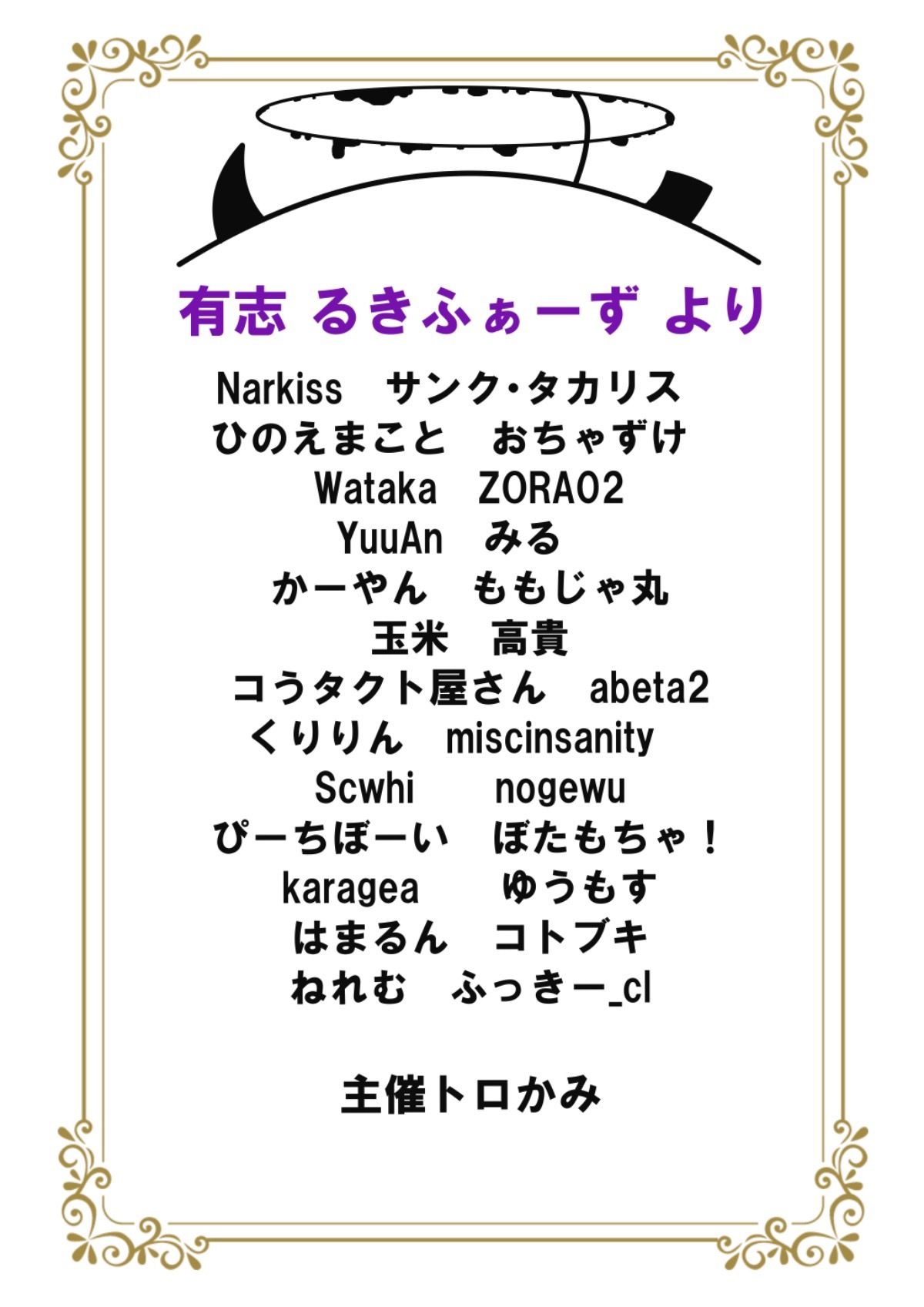 名前がなかったり間違いがあった場合、早めに連絡をいただけると幸いです。 -