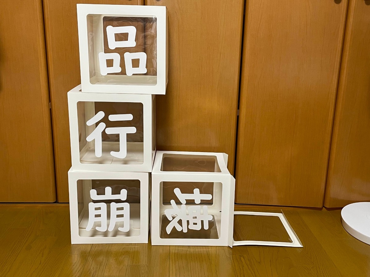 少し早いですが、フラスタに使用予定の「品行崩壊」バルーンボックスが完成しました!