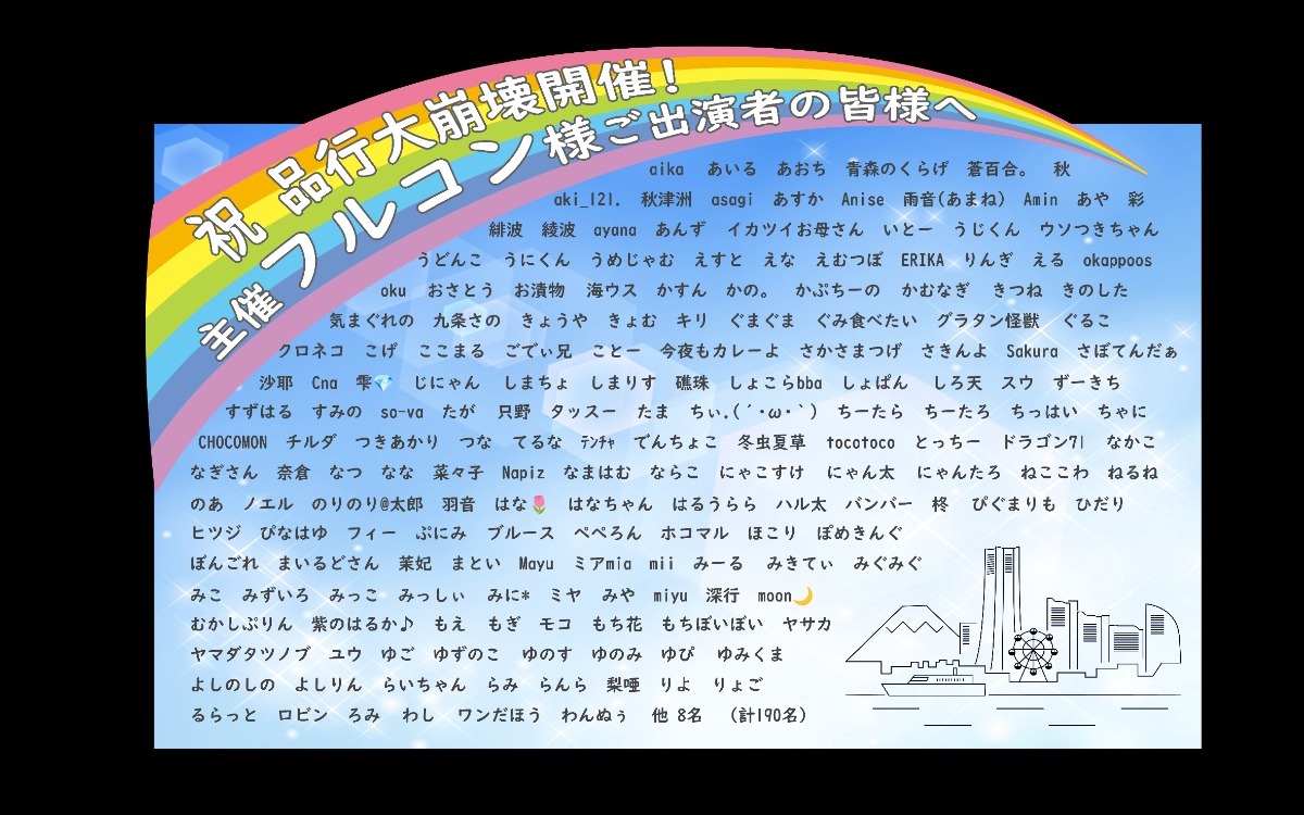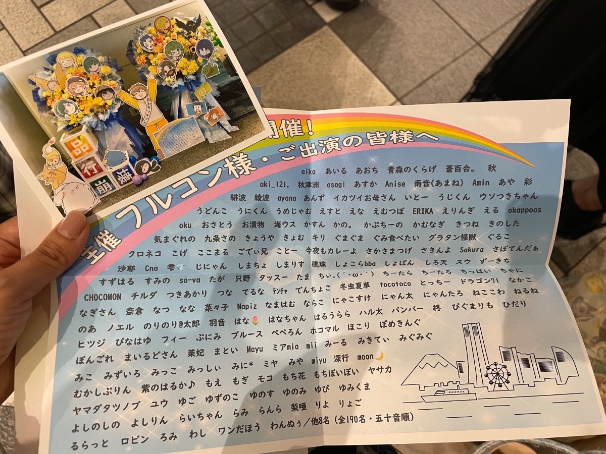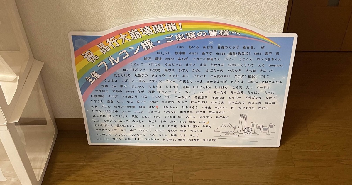 このたび、フラスタにご参加くださった方が大変多くいらっしゃいましたので、主催のフルコンさんが後ほどゆっくりとご覧いただけるよう、フラスタの写真と、皆さまのお名前を記載したリストを、フルコンさんのお手紙ボックスにお入れいたしました。