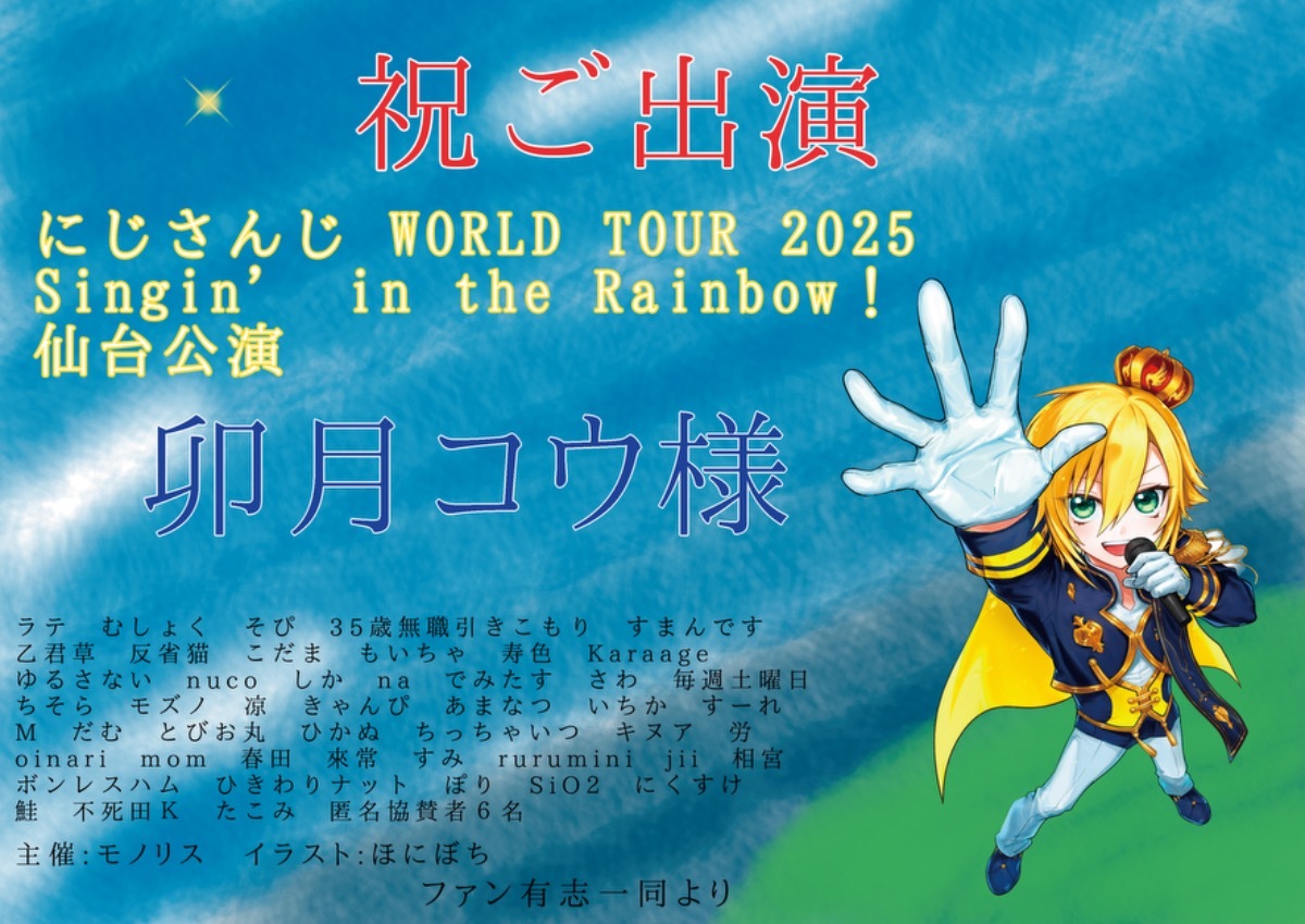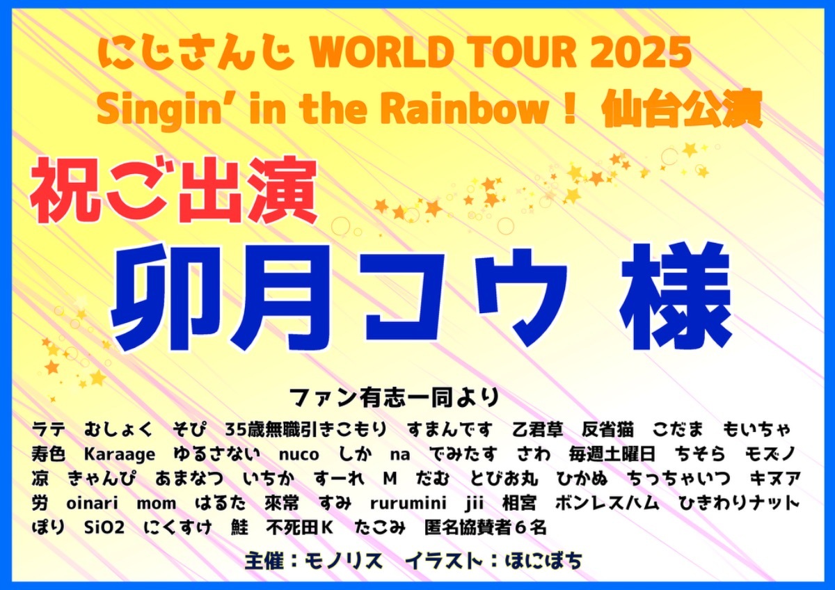 にじさんじ WORLD TOUR 2025 Singin’ in the Rainbow! 仙台公演 卯月コウさん フラスタ企画
