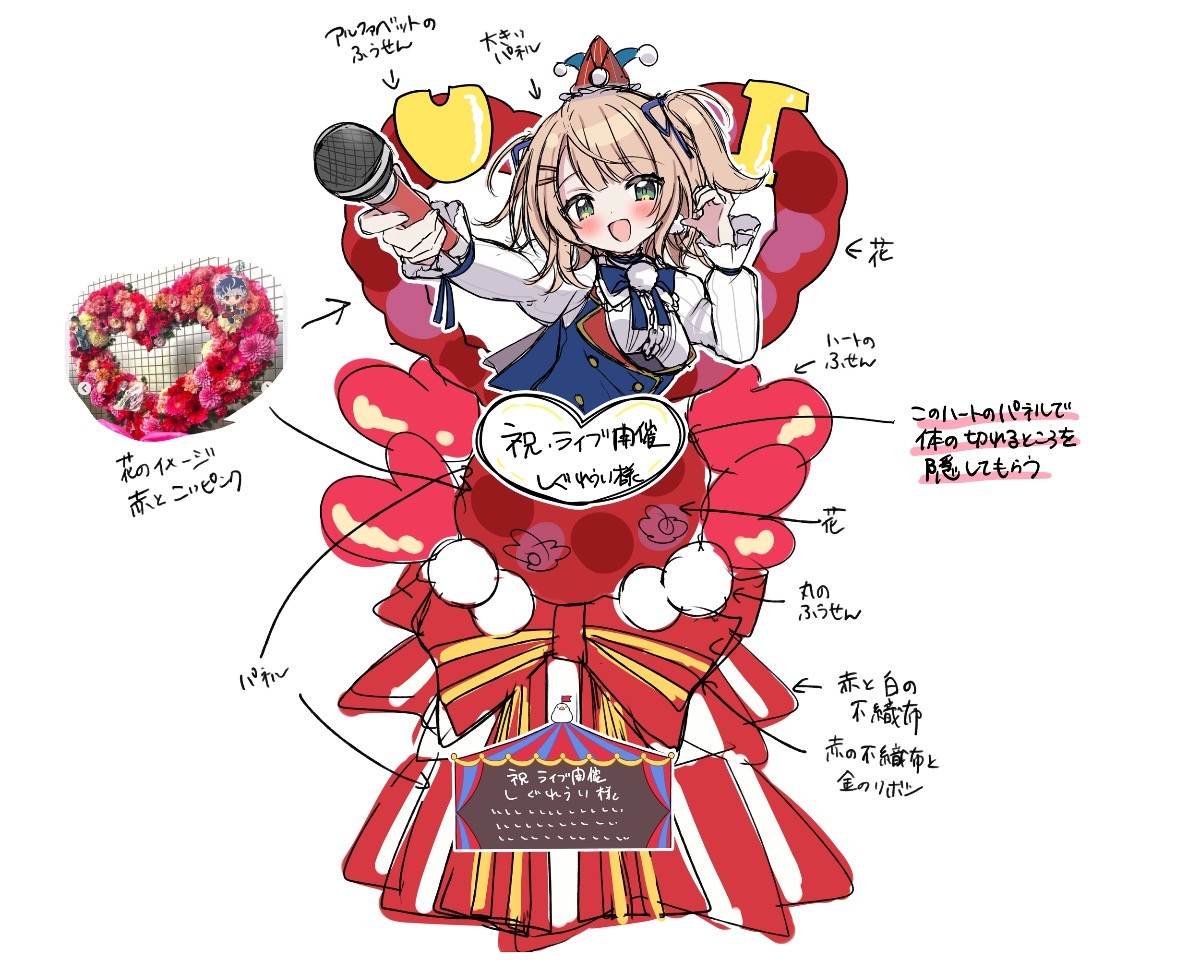 ⚫︎お花はしぐれうい先生のカラーである赤を基調にしており、その中に少しピンクを入れ可愛らしくしてもらう予定です。