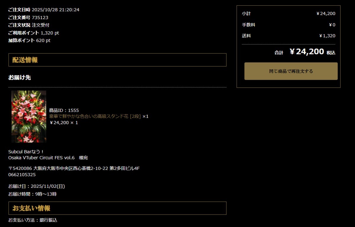 かうちゃんに前回、贈ったフラスタのポイントにて支払い。