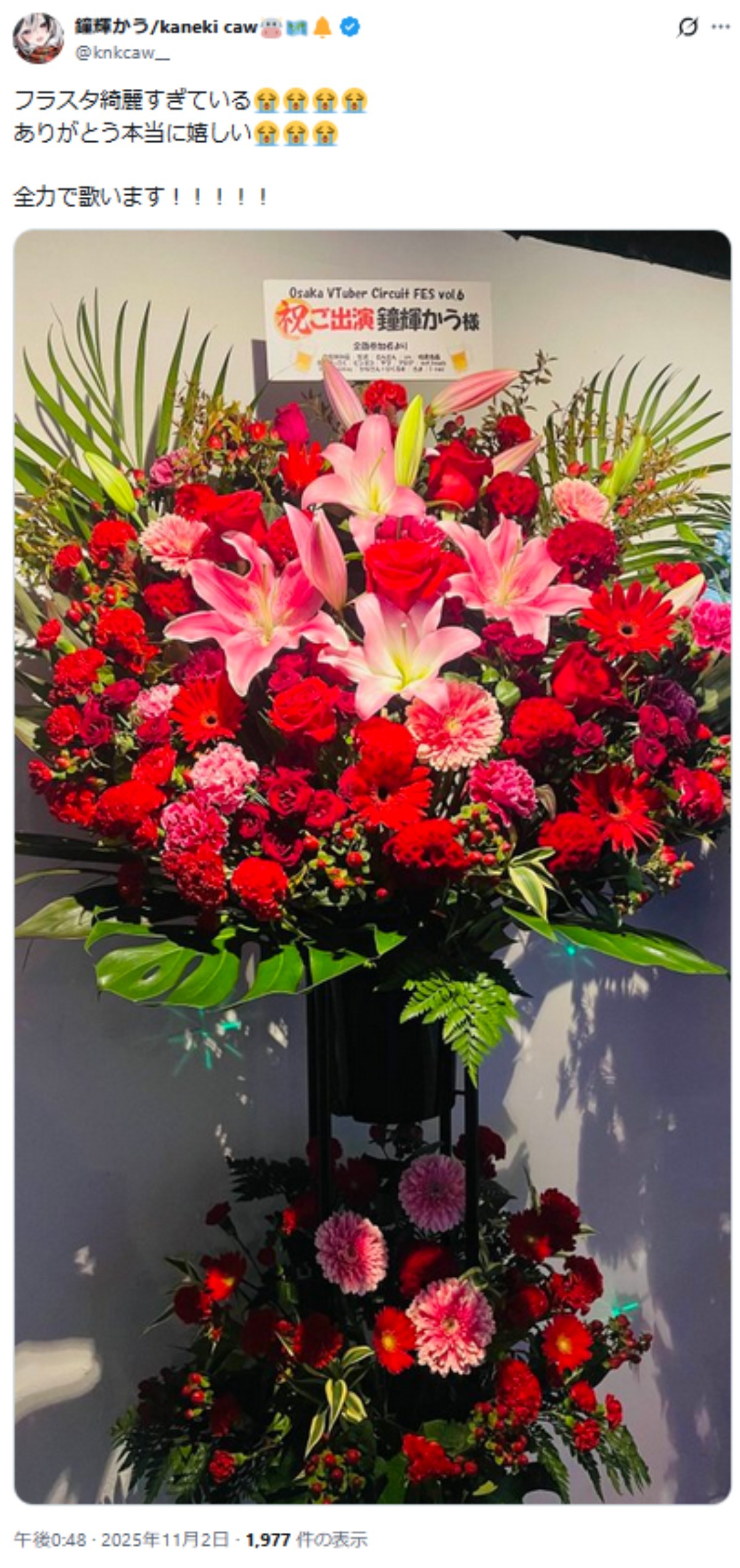 OVCフェス vol.6 に出演する鐘輝かうさんにフラワースタンドを贈りませんか?