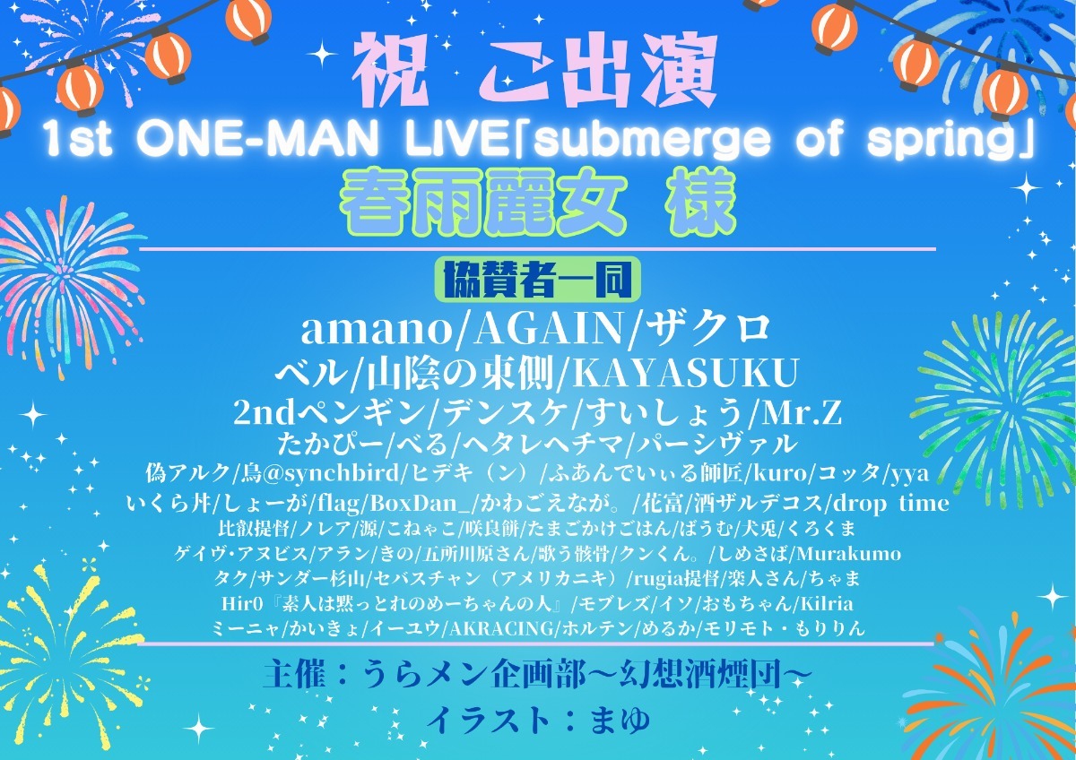 春雨麗女さんの1st ONE-MAN LIVE「submerge of spring」に一緒にフラワースタンドを贈りませんか?