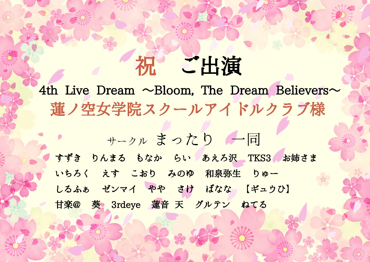 蓮ノ空4thライブ横浜公演の102期生にお花を贈りませんか?