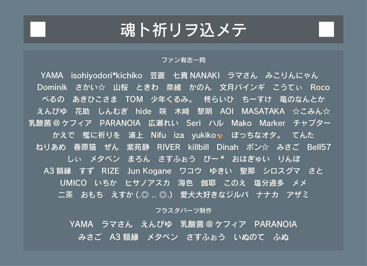 ※大阪公演(募集終了)のフラスタについては送付NGだったため、東京に移動します。大阪のデザイン、東京のデザインで2基、東京にて展示します。 -
