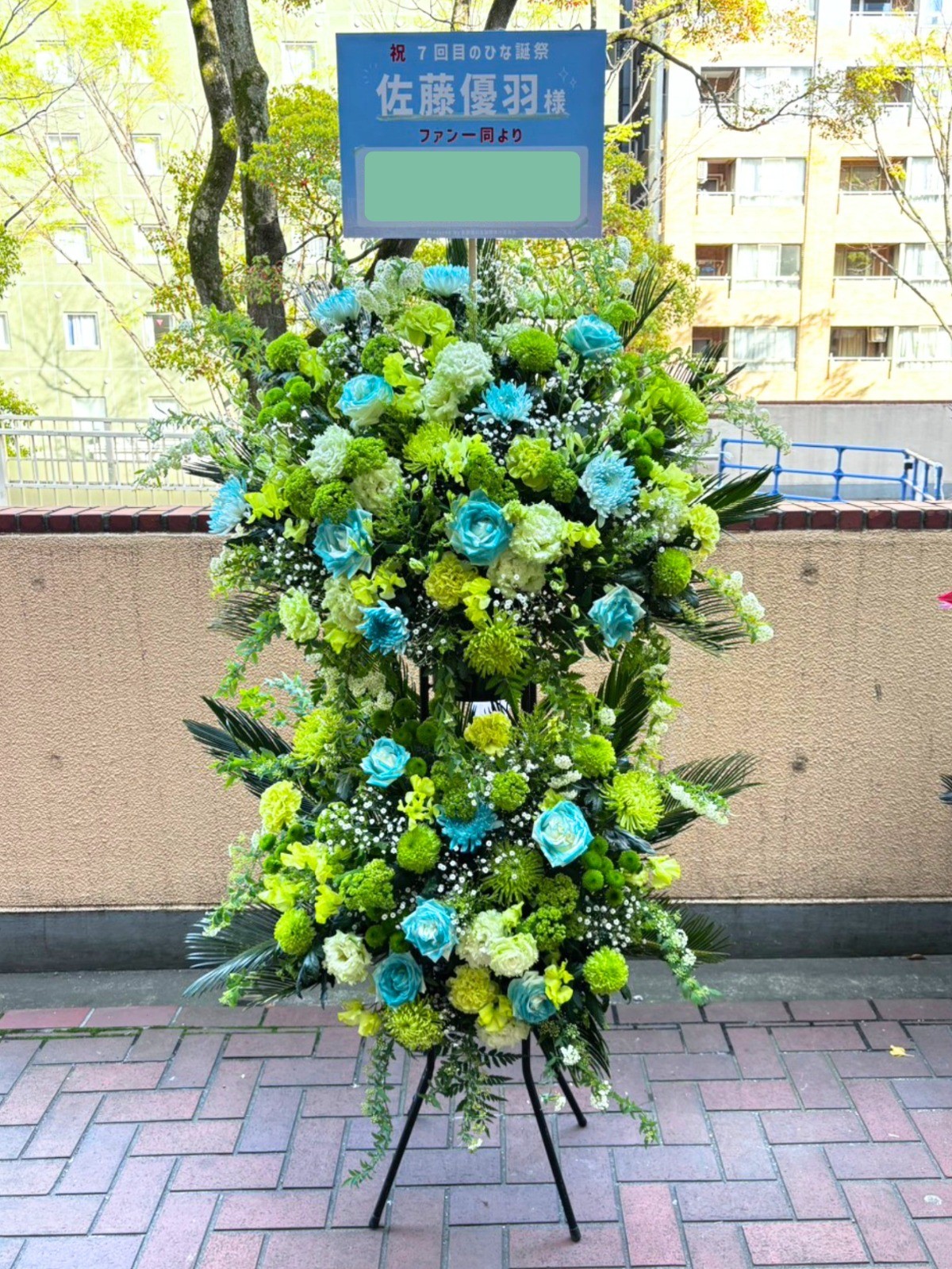 色味はサイリウムカラーにあわせたグリーンを基調に、グループカラーの空色、そして佐藤優羽さんの好きな『かすみ草』をアクセントとしてご使用いただきました。