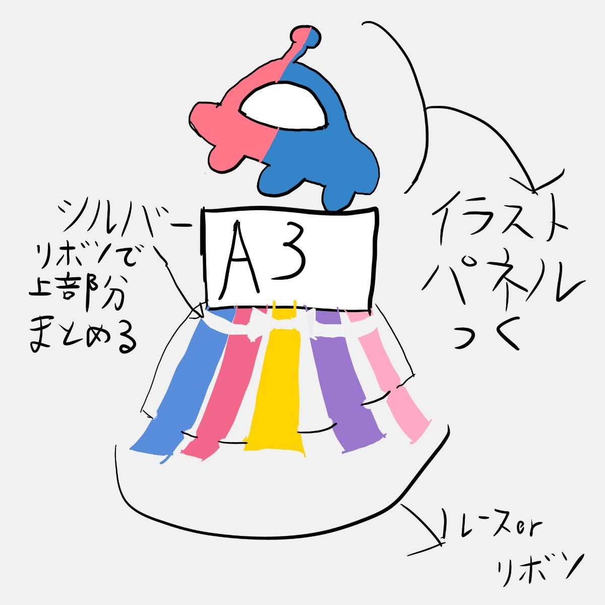 結構可愛らしいデザインにさせて貰いました!イラストパネルはSDキャラ状態のゆめみたずを宇宙船に乗せる感じにする予定です!