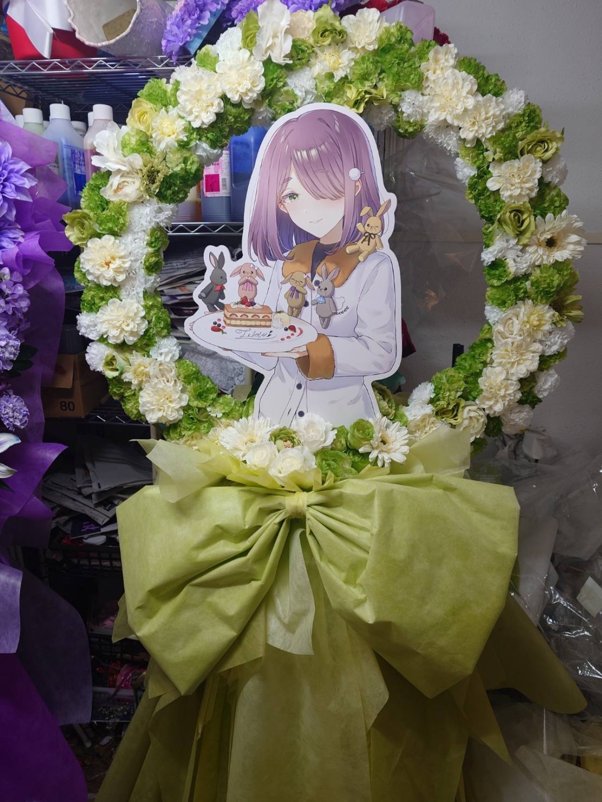 お花屋さんから、フラスタの途中経過のお写真が届きましたので、共有です。