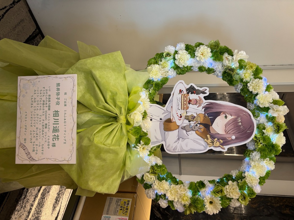 改めまして、「ミルふぁむミーティングⅡ」ご出演、熊井弥子役 相川遥花さま宛のフラワースタンドが完成、無事に会場に届きましたことをご報告させていただきます!