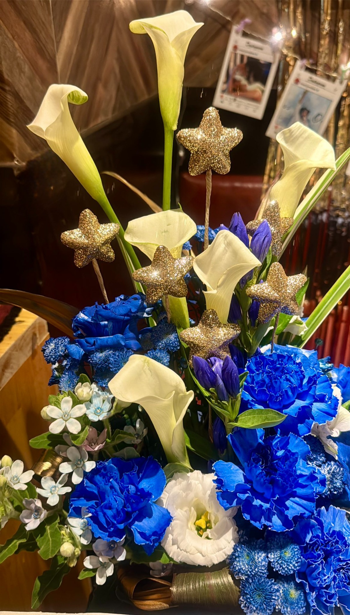 皆様のご協力のおかげで、イメージ通りの素敵なお祝い花をオーダーすることができ、会場に素晴らしい色合いを添えることができました! -