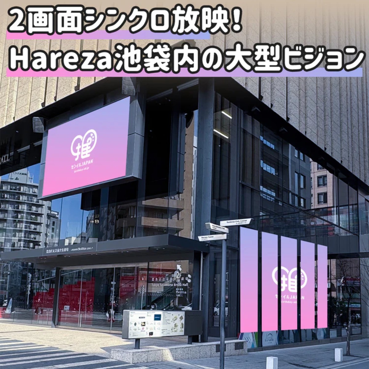 広告掲載場所が変更になりました。以前は秋葉原を予定していましたが、広告会社と相談の上、より人目につきやすい池袋のハレザビジョンに決定いたしました。