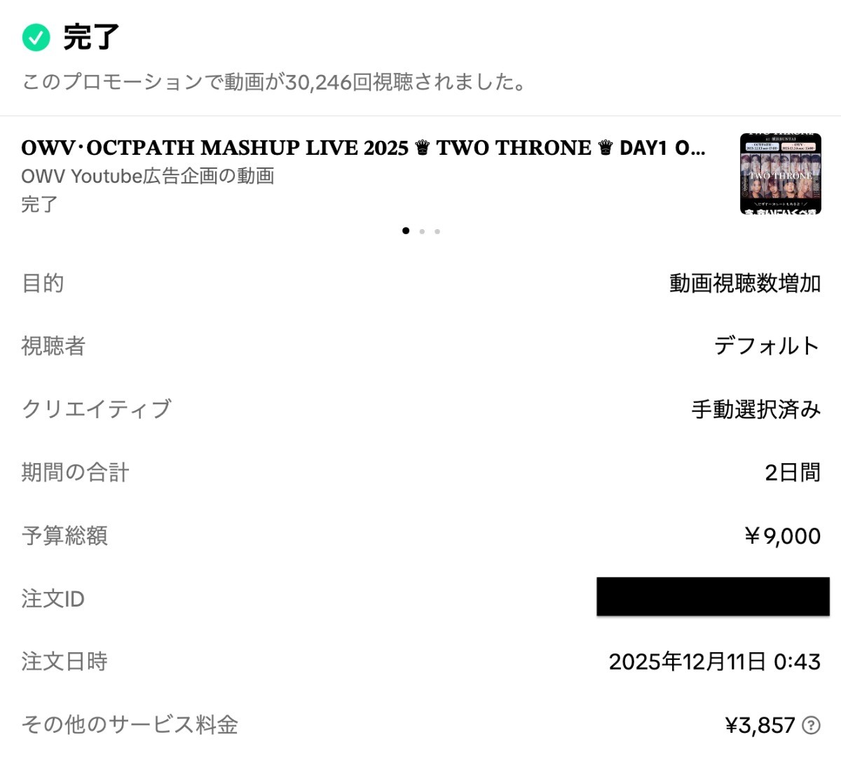 OWV・OCTPATH MASHUP LIVE 2025 TWO THRONE Youtube広告企画