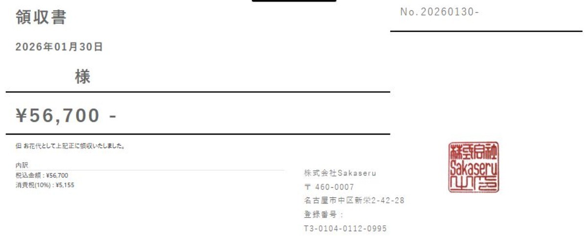 お花代、送料、Sakaseruシステム利用料