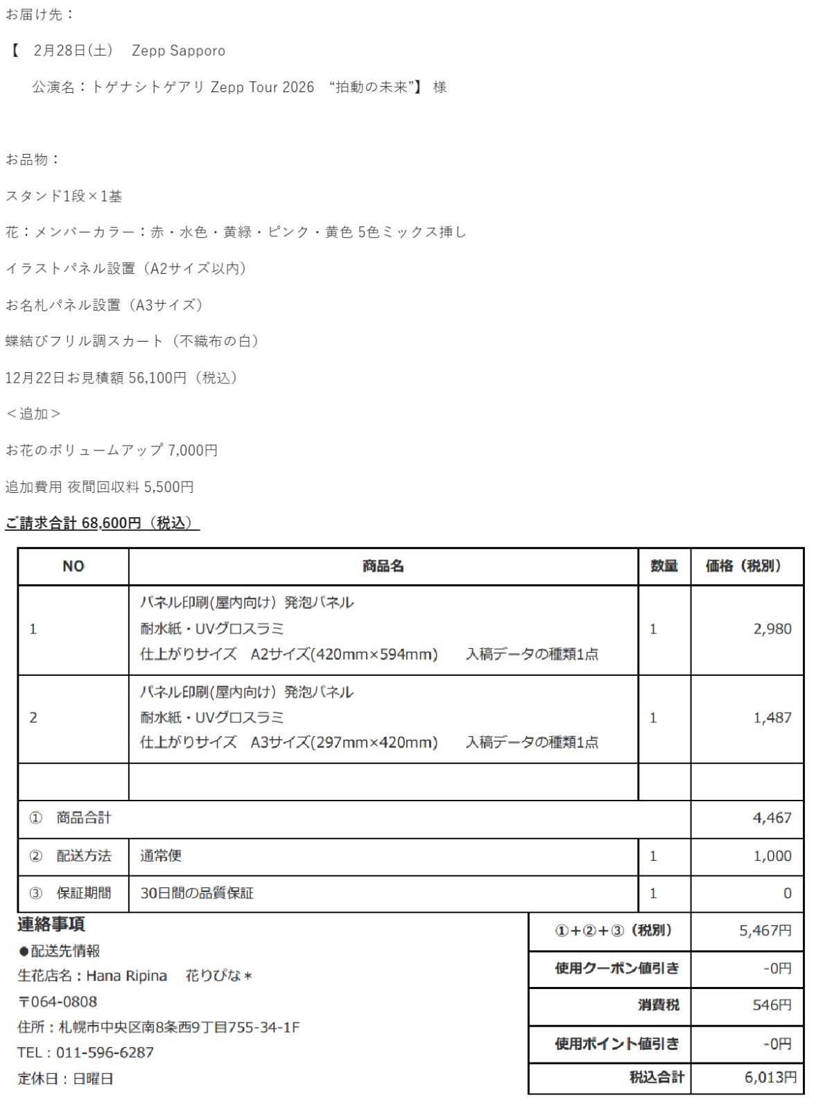 【フラスタ企画】トゲナシトゲアリ Zepp Tour 2026 拍動の未来 Zepp Sapporo公演にフラスタをお贈りしませんか?