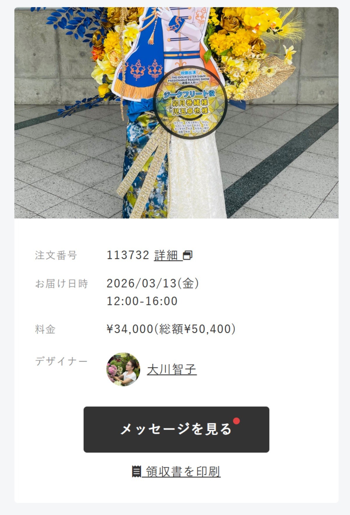 お陰様で最高のフラスタを届けられました!