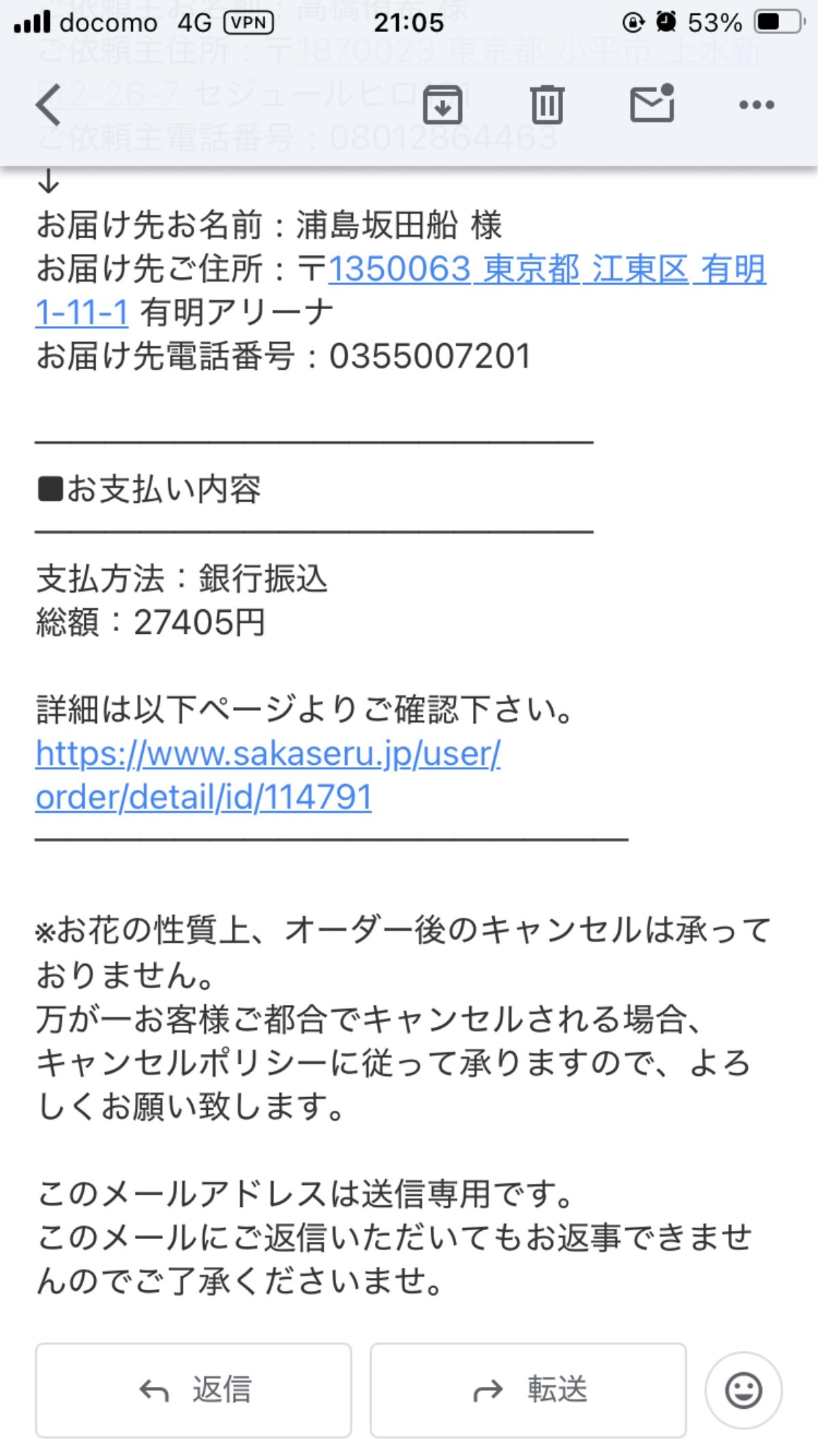 花贈り完了しました!