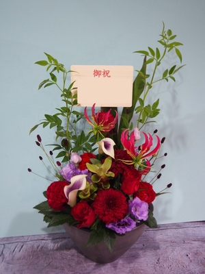 フラワーデザイナー加納がお客さまのご希望と、お祝いに相応しい華やかさとを、併せて形にさせて頂きました。