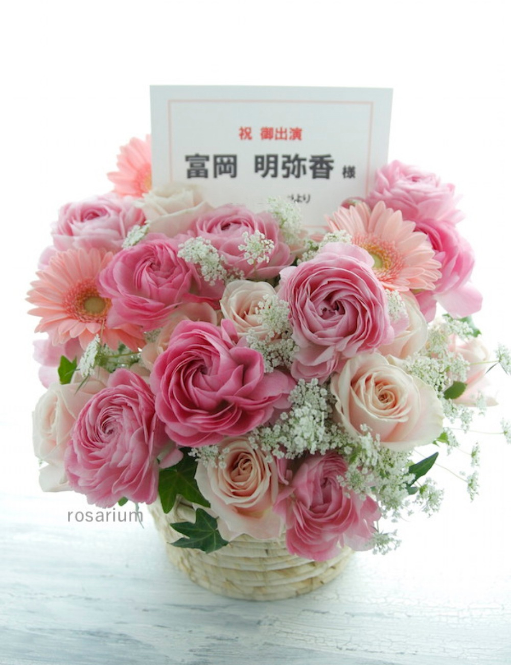#6,000円-9,000円 #公演祝い #フラワーデザイナー宮崎 #ピンク #劇場momo #富岡明弥香 # #可愛い #楽屋花 #舞台 #推し花