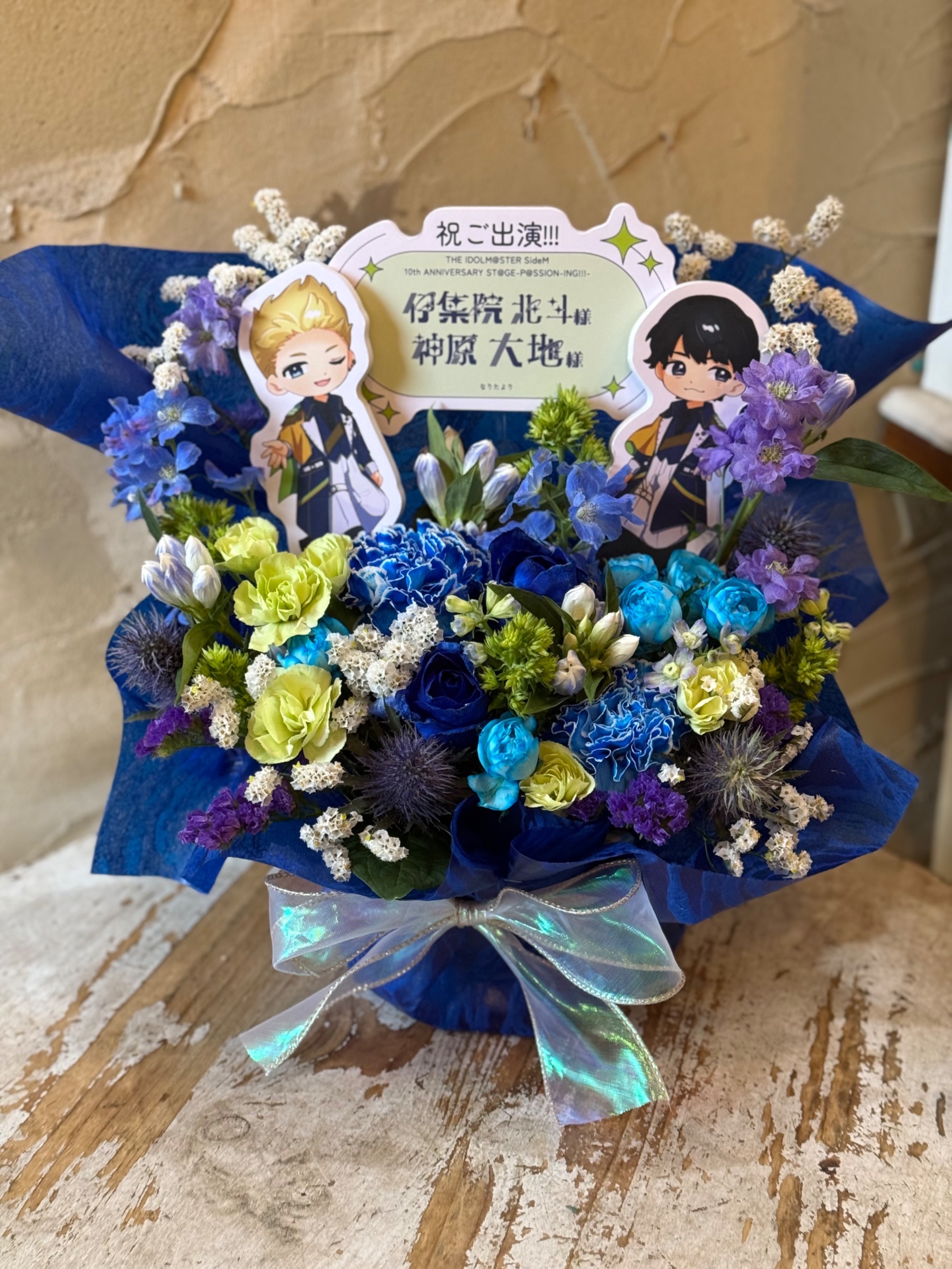#6,000円-9,000円 #公演・出演祝い #フラワーデザイナー牧 #ブルー #楽屋花 #推し花 #Kアリーナ横浜 #伊集院北斗 #神原大地 #アイマスシリーズ #アイドルマスターsideM #リボン #オリジナル立て札 #パネル装飾 #上品