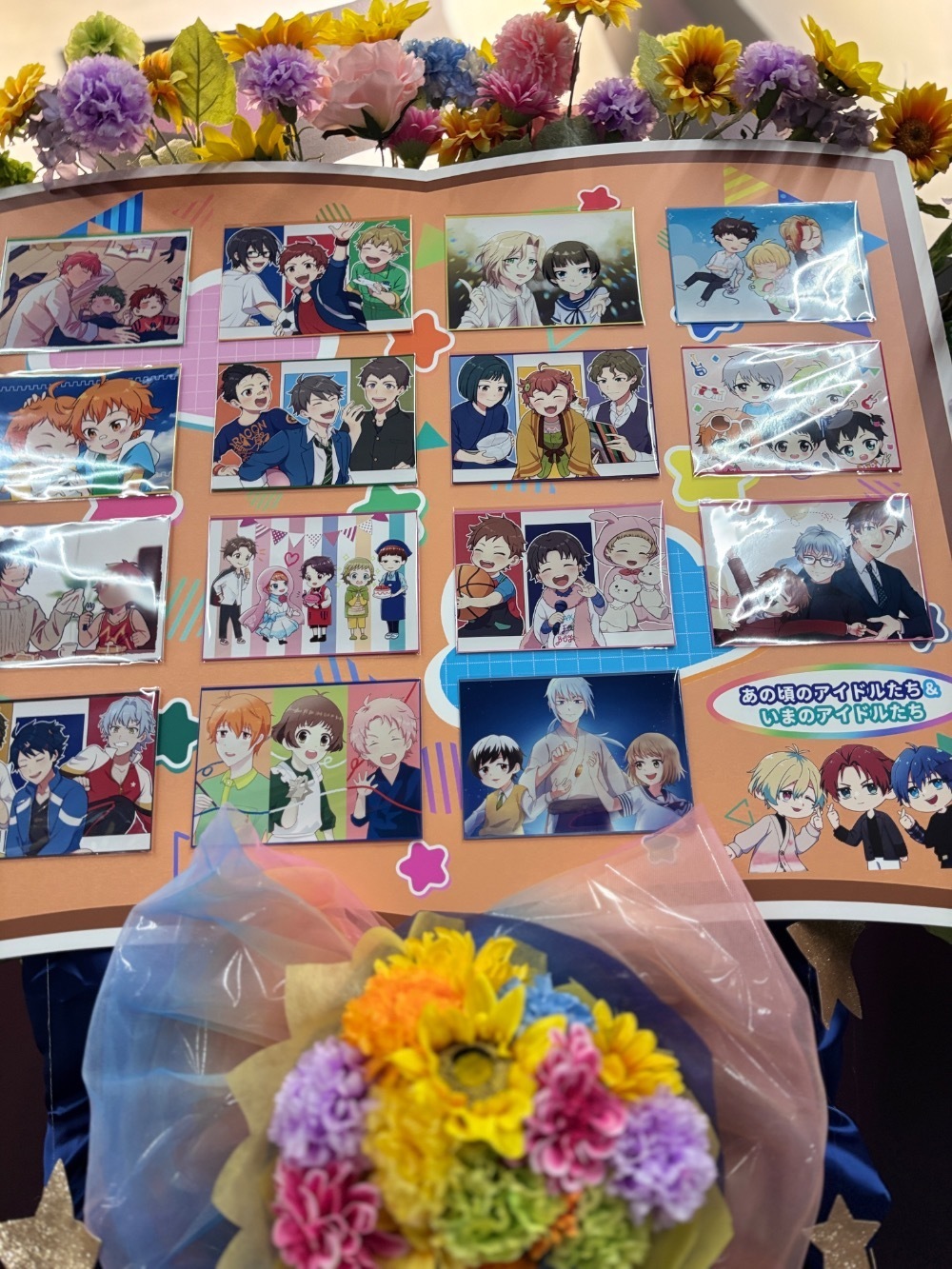 リメンバーショットと呼ばれる、315Production所属アイドルたちの「あの頃」(過去)を表した写真イラストをモチーフにしたフラワースタンドとなります。
