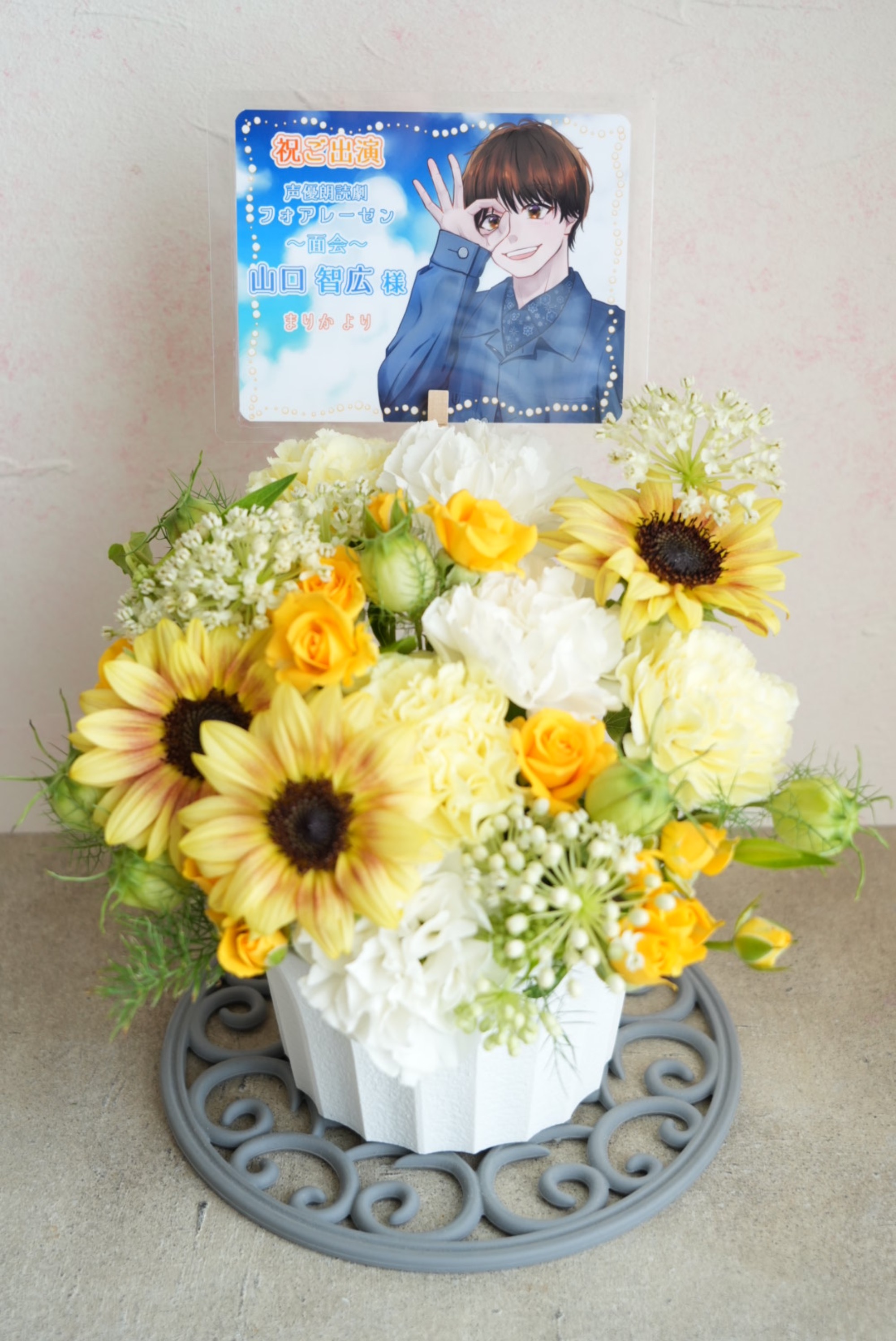 #-5,000円 #公演・出演祝い #フラワーデザイナー成田 #黄 #楽屋花 #推し花 #ぎふ清流文化プラザ #山口智広 #声優 #声優朗読劇 #オリジナル立て札 #ナチュラル