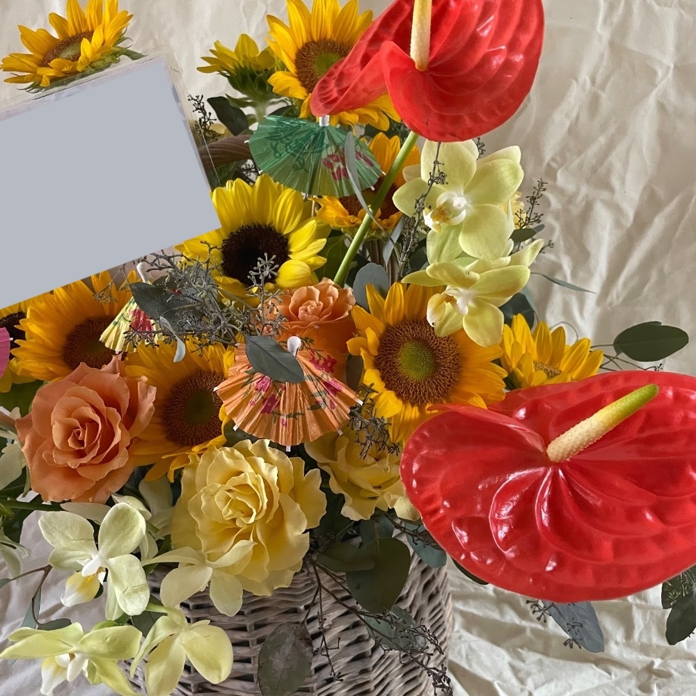 向日葵などを使って夏らしい感じで作って頂くようにお願いしました。