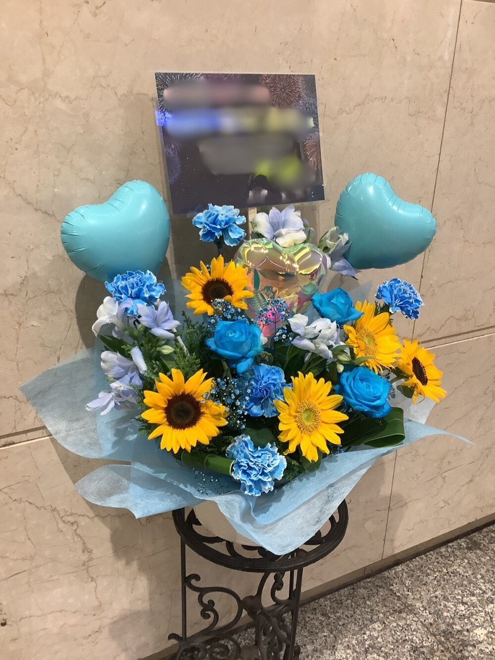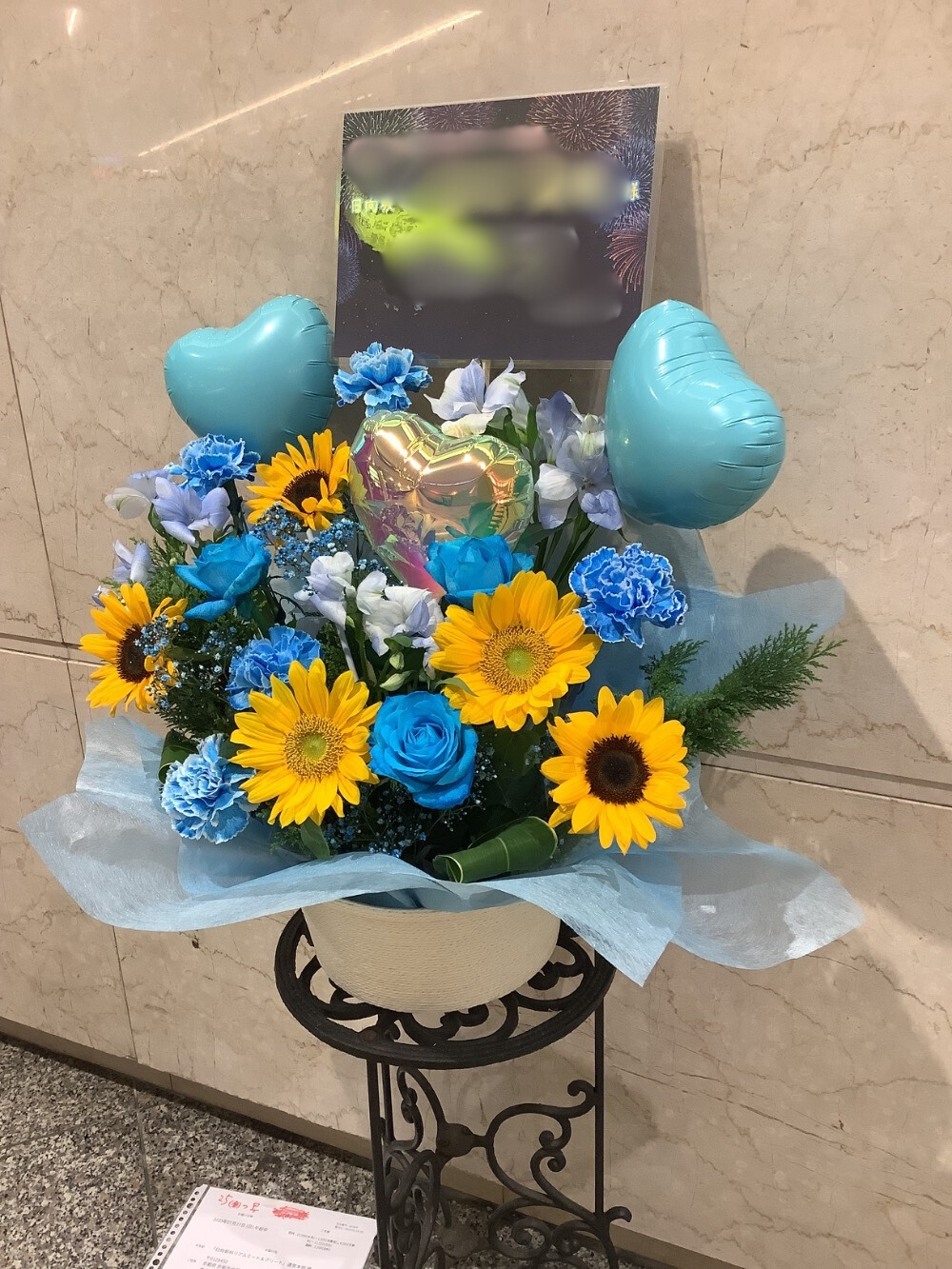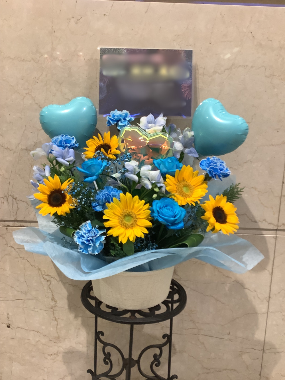 #15,000円 #握手会・オンラインお話し会 #フラワーデザイナーかわむら #ブルー #楽屋花 #推し花 #バルーン #オリジナル立て札 #可愛い