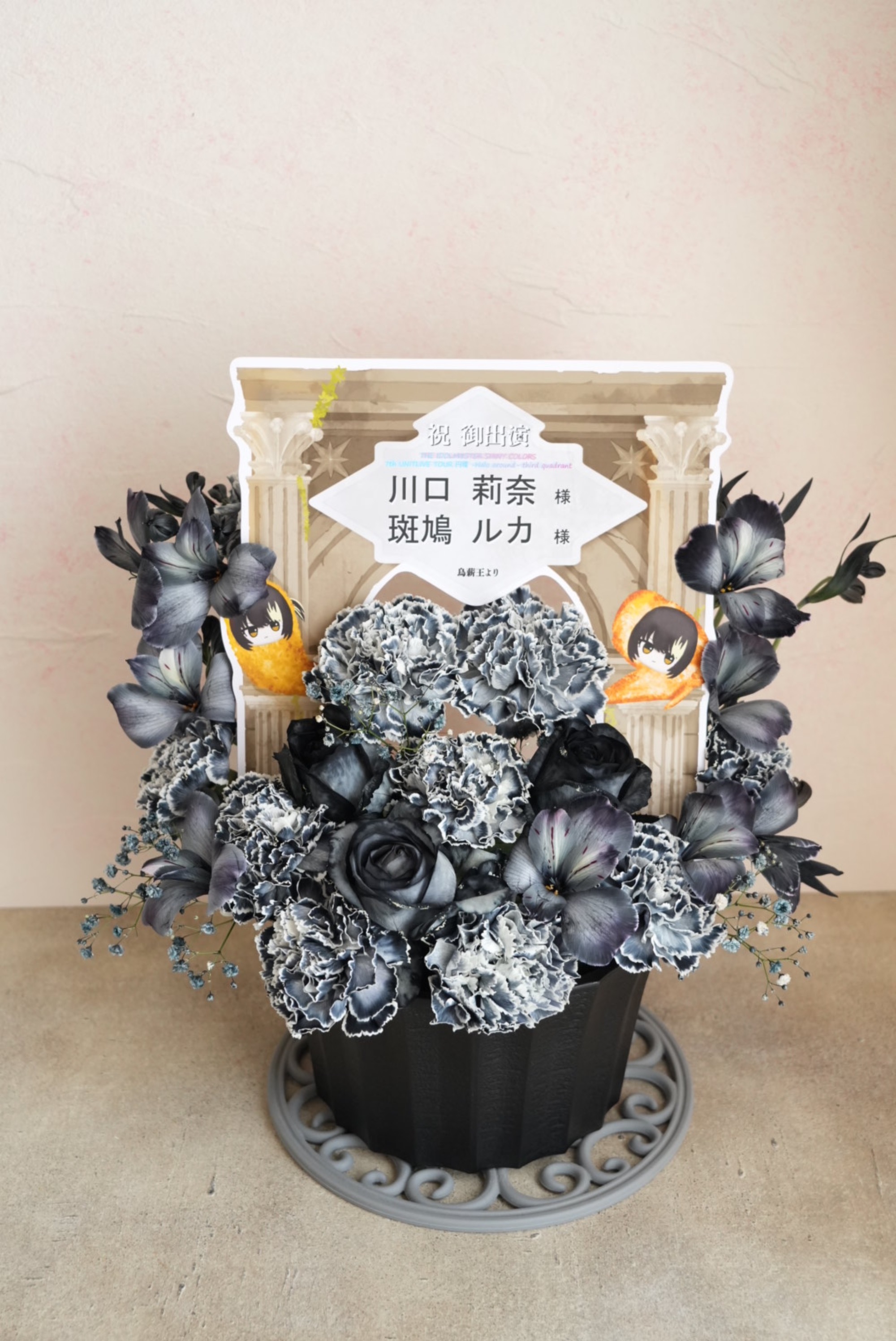 #10,000円 #公演・出演祝い #フラワーデザイナー成田 #黒 #楽屋花 #推し花 #Aichi Sky Expo #アイマスシリーズ #アイドルマスターシャイニーカラーズ #川口莉奈 #斑鳩ルカ #パネル装飾 #シック