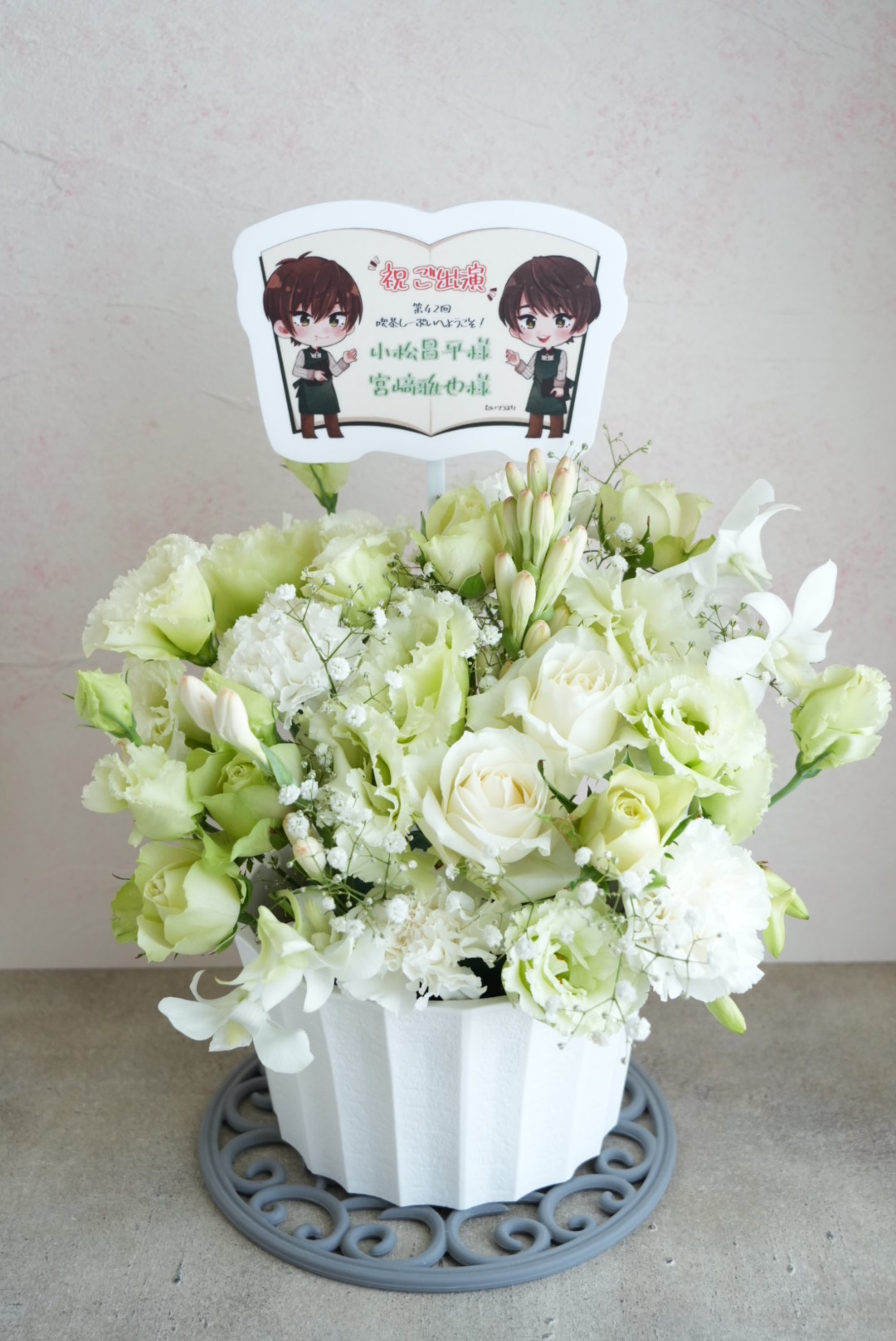 #11,000円-14,000円 #公演・出演祝い #フラワーデザイナー成田 #グリーン #楽屋花 #推し花 #あるあるCity #喫茶しーぷい #小松昌平 #宮﨑雅也 #声優 #パネル装飾