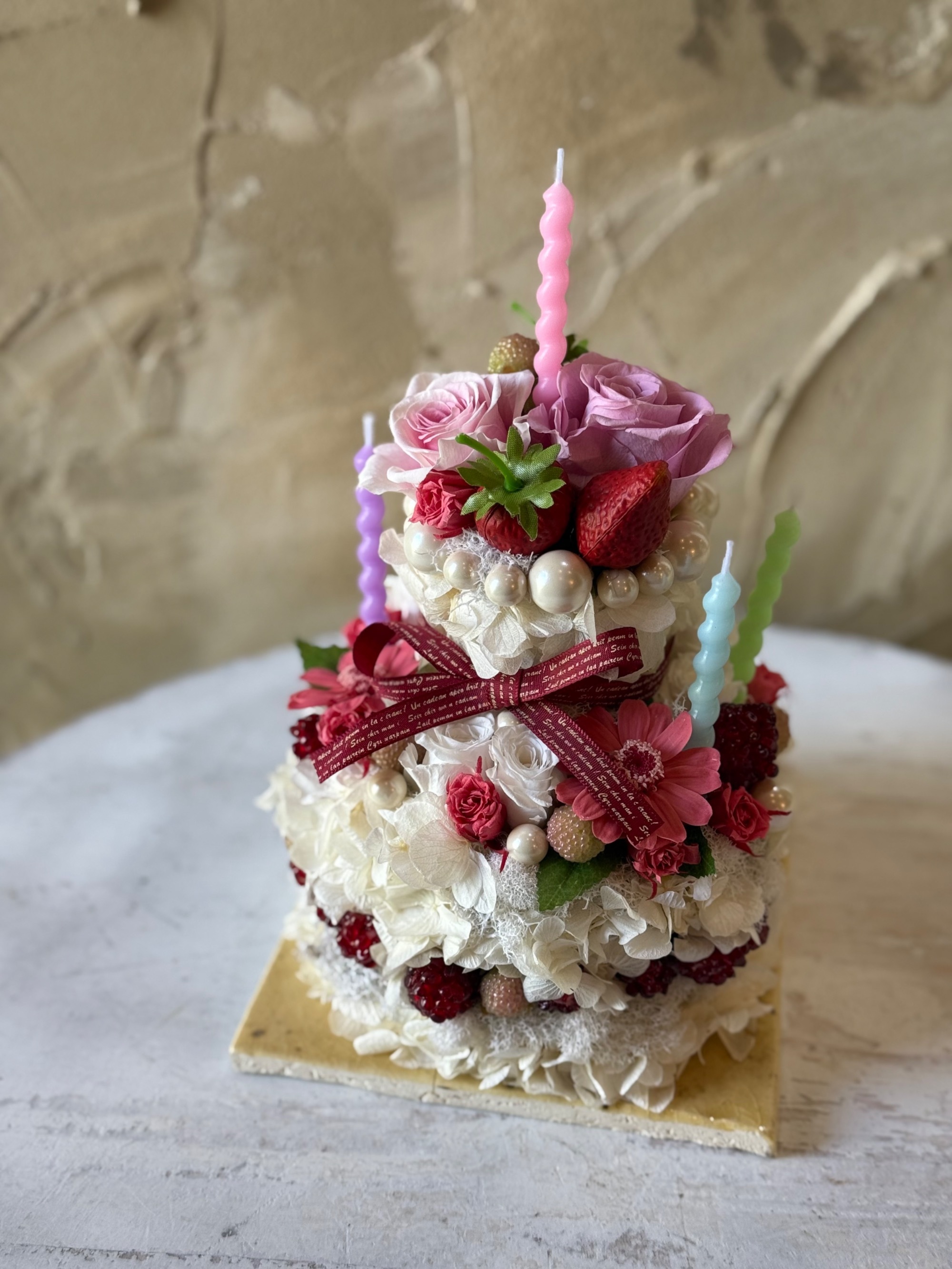 誕生日イベントということもありフラワースタンドを考えていましたがフラワーケーキというものを目にしてこれならピッタリだ!と思い注文させていただきました。