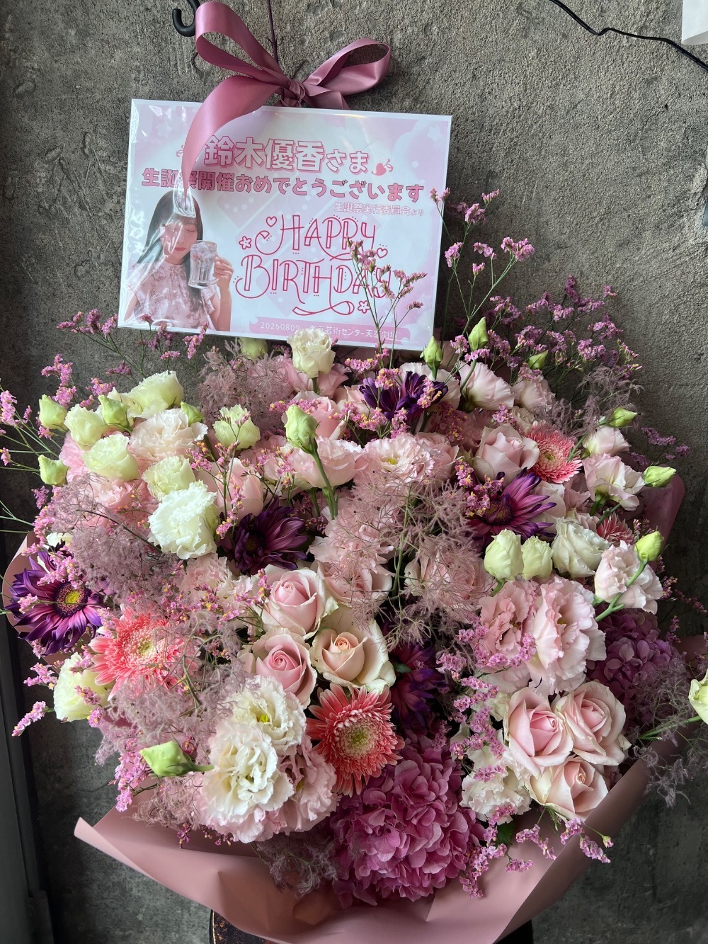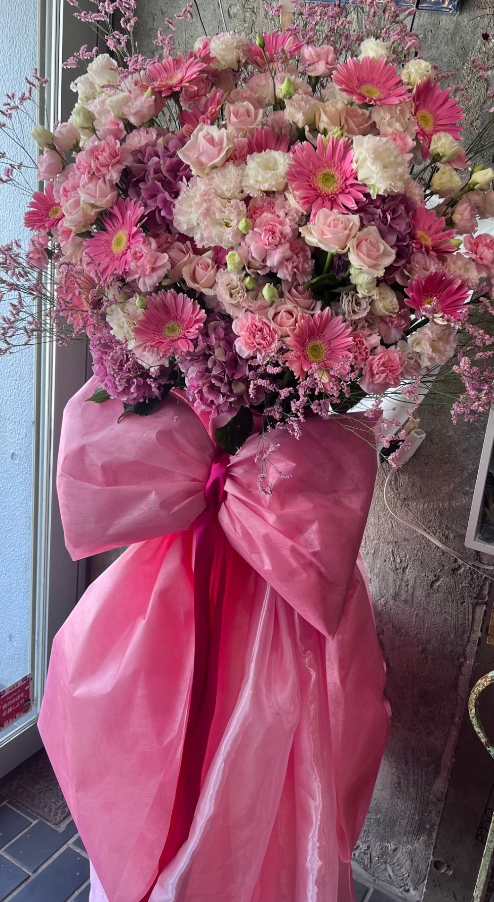 #90,000円 #公演・出演祝い #フラワーデザイナーYOCO #ピンク #スタンド花 #推し花 #東京芸術センター # 鈴木優香 #リボン #可愛い