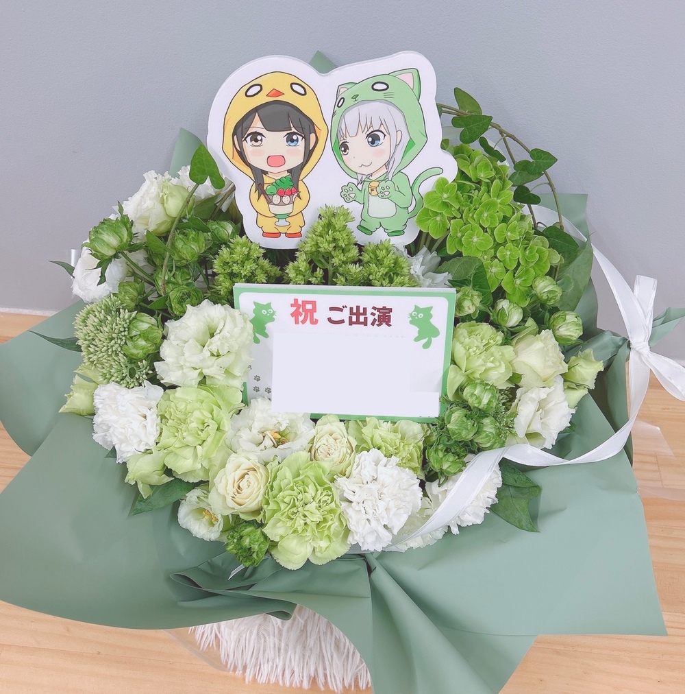#11,000円-14,000円 #公演・出演祝い #フラワーデザイナー志村 #グリーン #楽屋花 #推し花 #オリジナル立て札 #リボン #パネル装飾