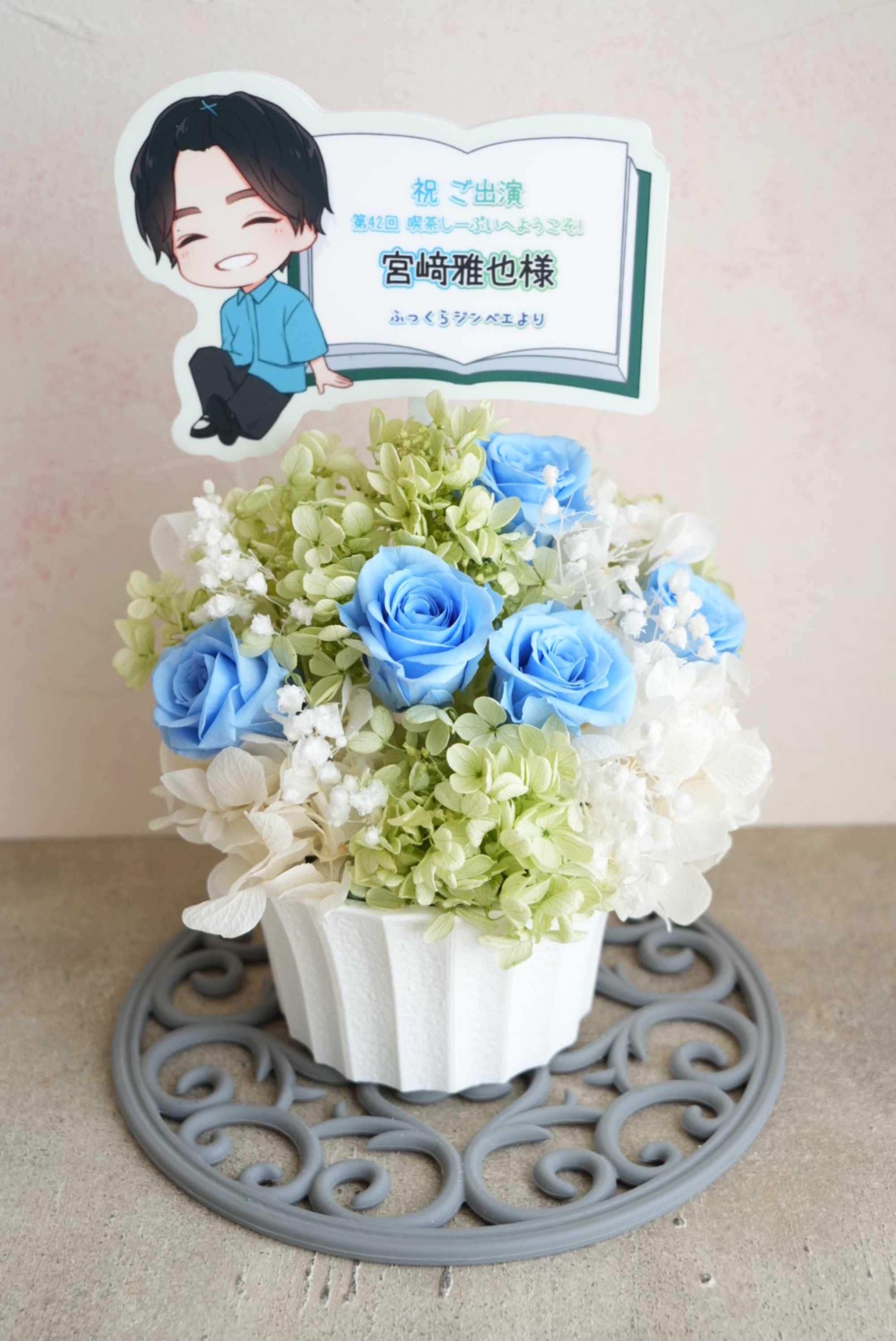 #10,000円 #公演・出演祝い #フラワーデザイナー成田 #プリザーブドフラワー #楽屋花 #推し花 #あるあるCity #喫茶しーぷい #宮﨑雅也 #声優 #上品 #パネル装飾