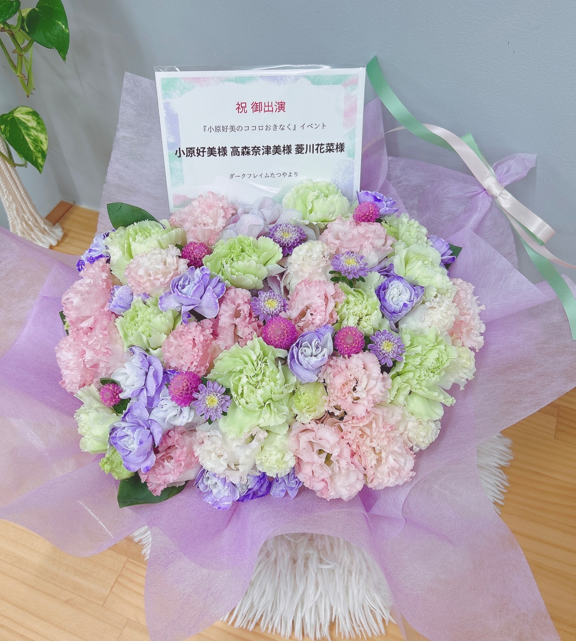#-5,000円 #公演・出演祝い #フラワーデザイナー志村 #グリーン #楽屋花 #推し花 #東京証券会館ホール #小原好美 #高森奈津美 #菱川花菜 #声優 #可愛い