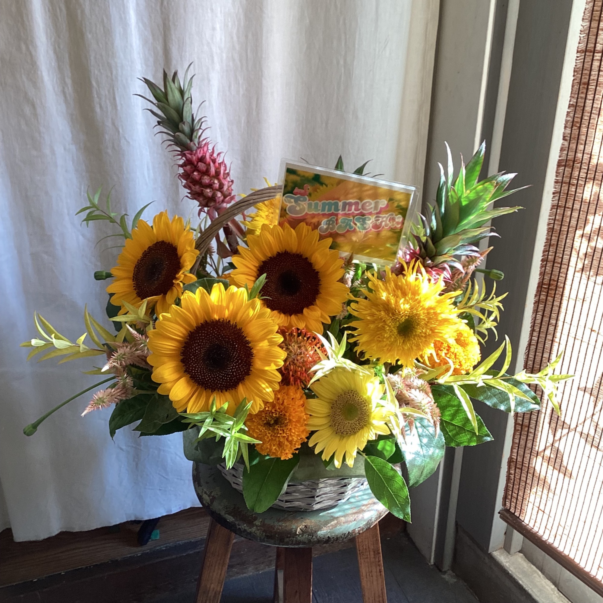 #6,000円-9,000円 #公演・出演祝い #フラワーデザイナー近藤 #黄 #楽屋花 #推し花 #渋谷Malcolm #キャメ #オリジナル立て札