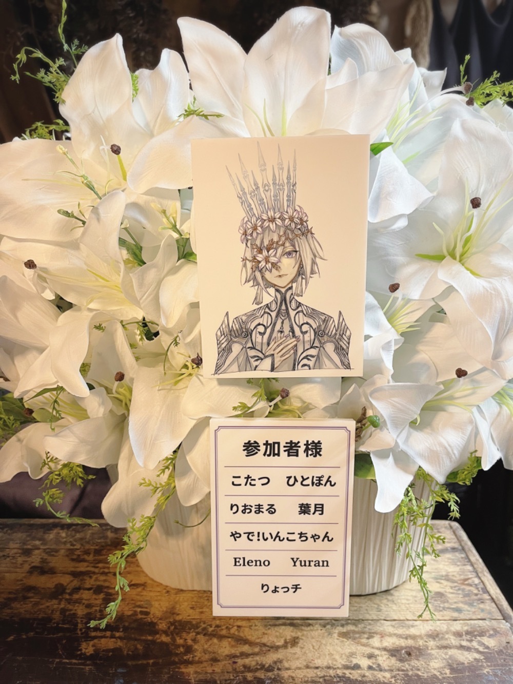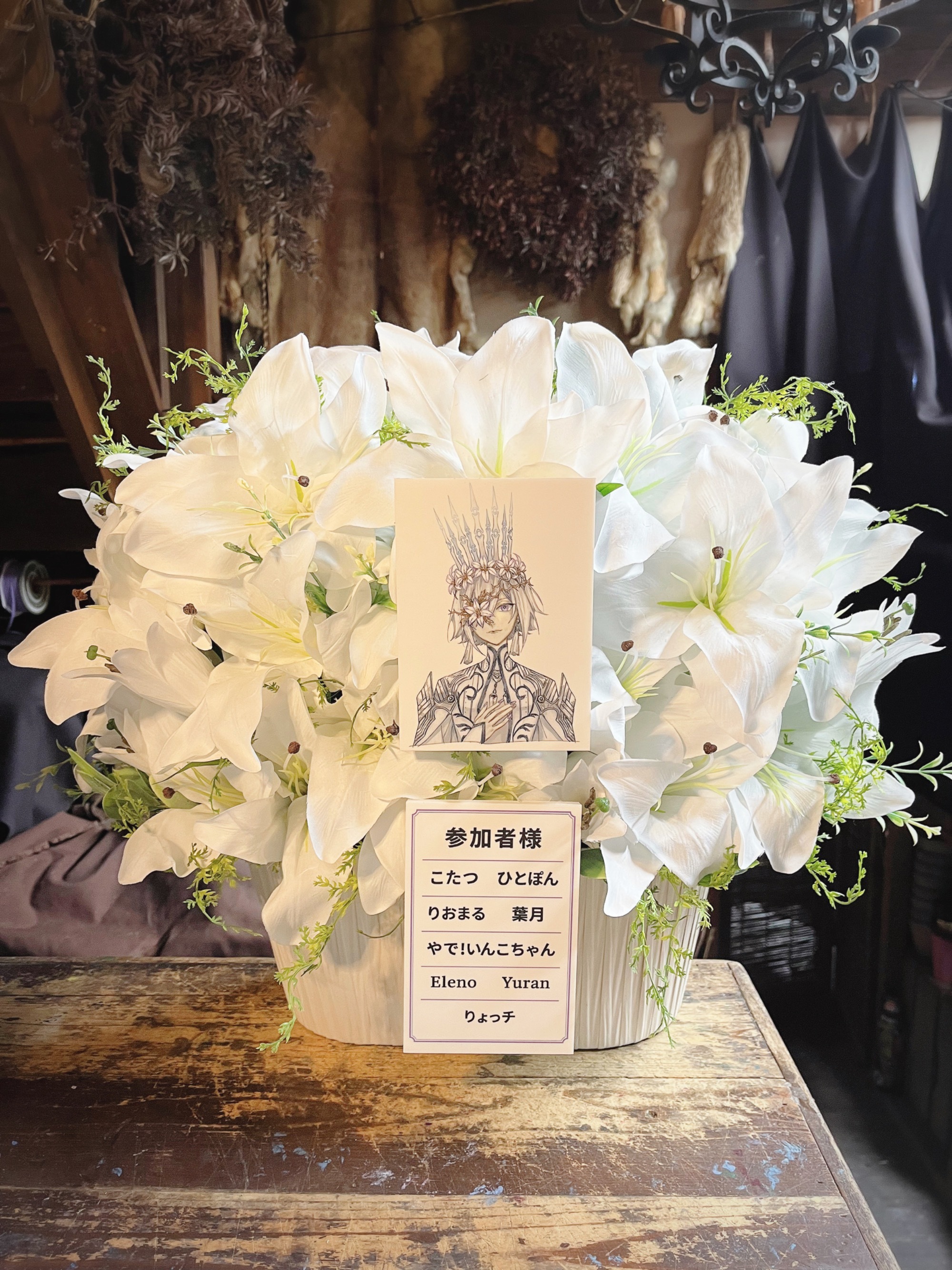 #35,000円-50,000円 #生誕イベント・推しの誕生日 #フラワーデザイナー青山 #白 #造花 #楽屋花 #推し花 #伽琉駝門カフェ #Layla. #オリジナル立て札