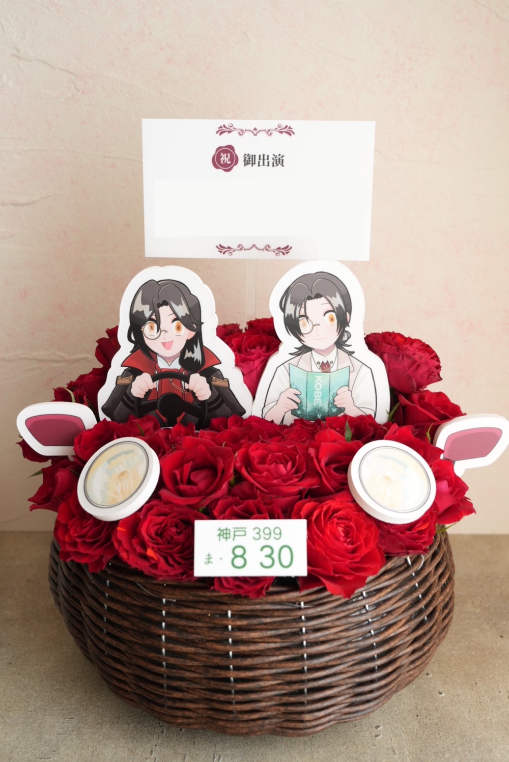 #35,000円-50,000円 #公演・出演祝い #フラワーデザイナー成田 #赤 #楽屋花 #推し花 #ユニーク #可愛い #モチーフ #パネル装飾 #オリジナル立て札