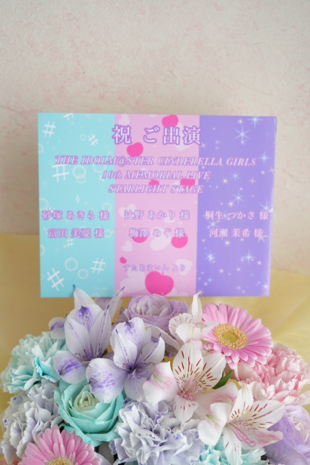 Kアリーナ横浜 公演 [「THE IDOLM@STER CINDERELLA GIRLS 10th MEMORIAL LIVE STARLIGHT STAGE」] 砂塚あきら様 富田美憂様 辻野あかり様 梅澤めぐ様 桐生つかさ様 河瀬茉希様 ご出演祝い花・楽屋花