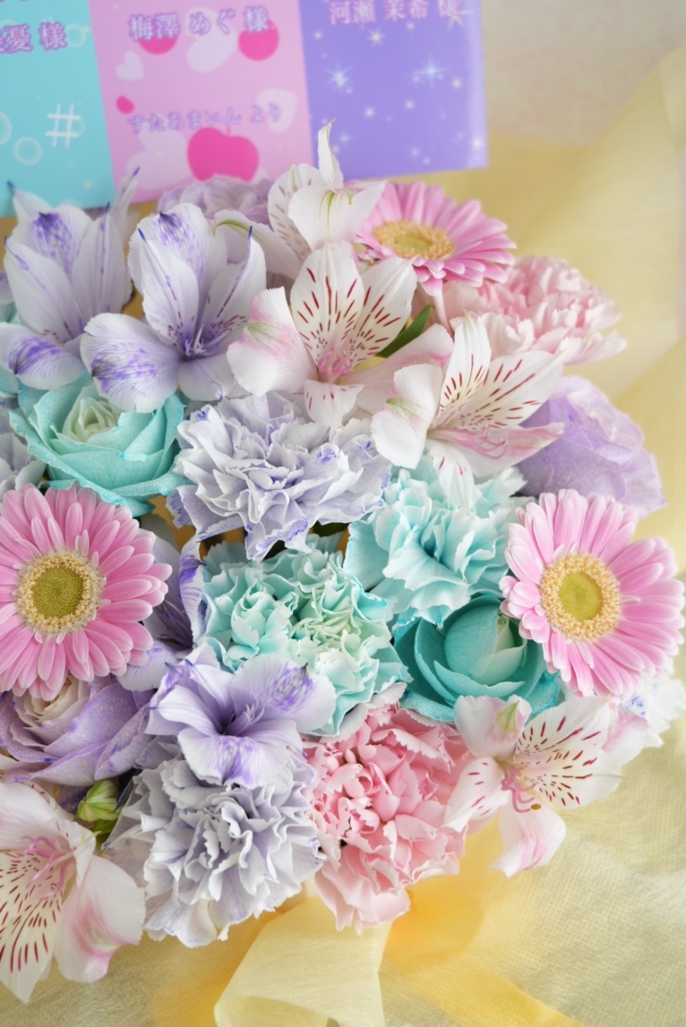 ご出演されるアイドルが歌唱する楽曲のイメージ色を、お花の色に取り入れていただきました