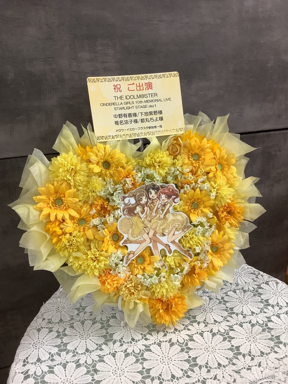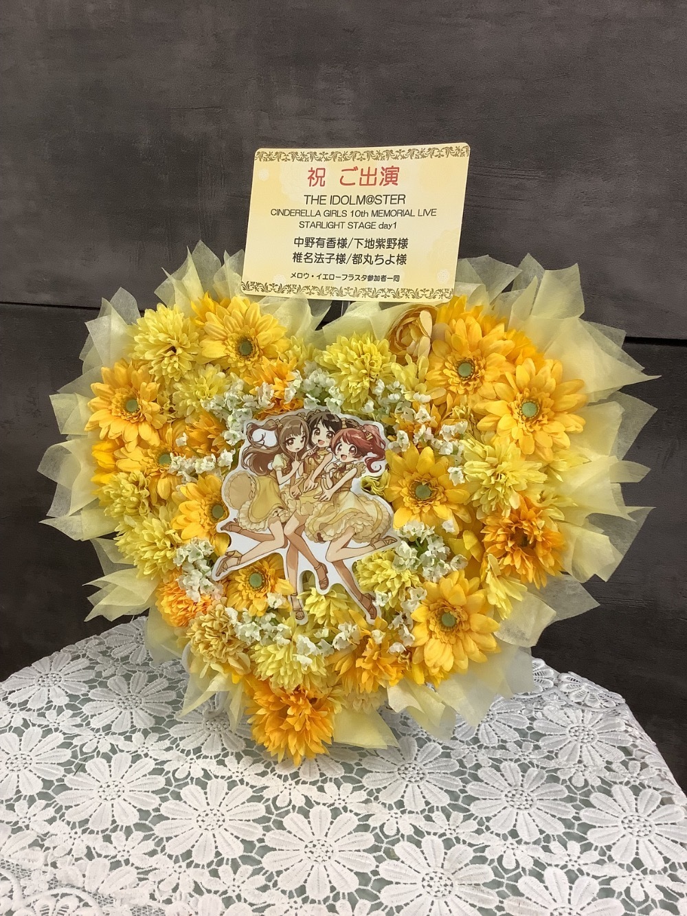Kアリーナ横浜 公演 [THE IDOLM@STER CINDERELLA GIRLS 10th MEMORIAL LIVE STARLIGHT STAGE] メロウ・イエロー 中野有香様/下地紫野様 椎名法子様/都丸ちよ様 ご出演祝い花・楽屋花