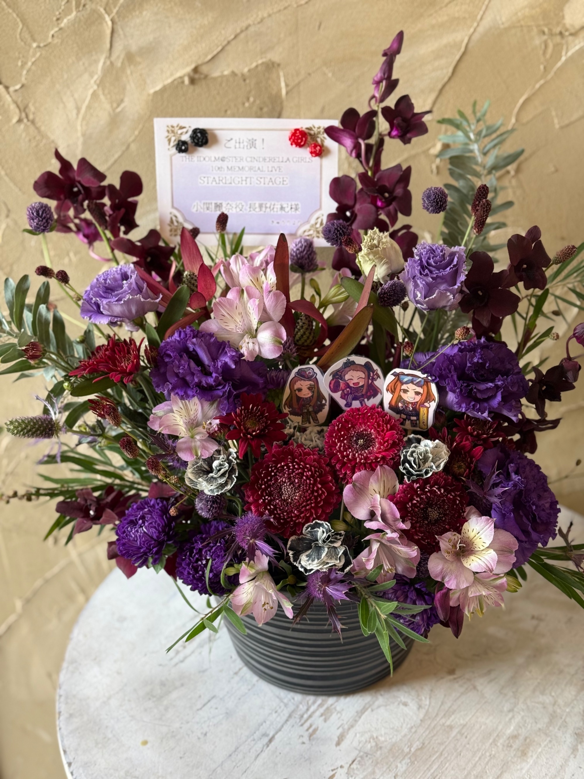 #10,000円 #公演・出演祝い #フラワーデザイナー牧 #紫 #楽屋花 #推し花 #Kアリーナ横浜 #長野佑紀 #声優 #アイマスシリーズ #アイドルマスターシンデレラガールズ #オリジナル立て札