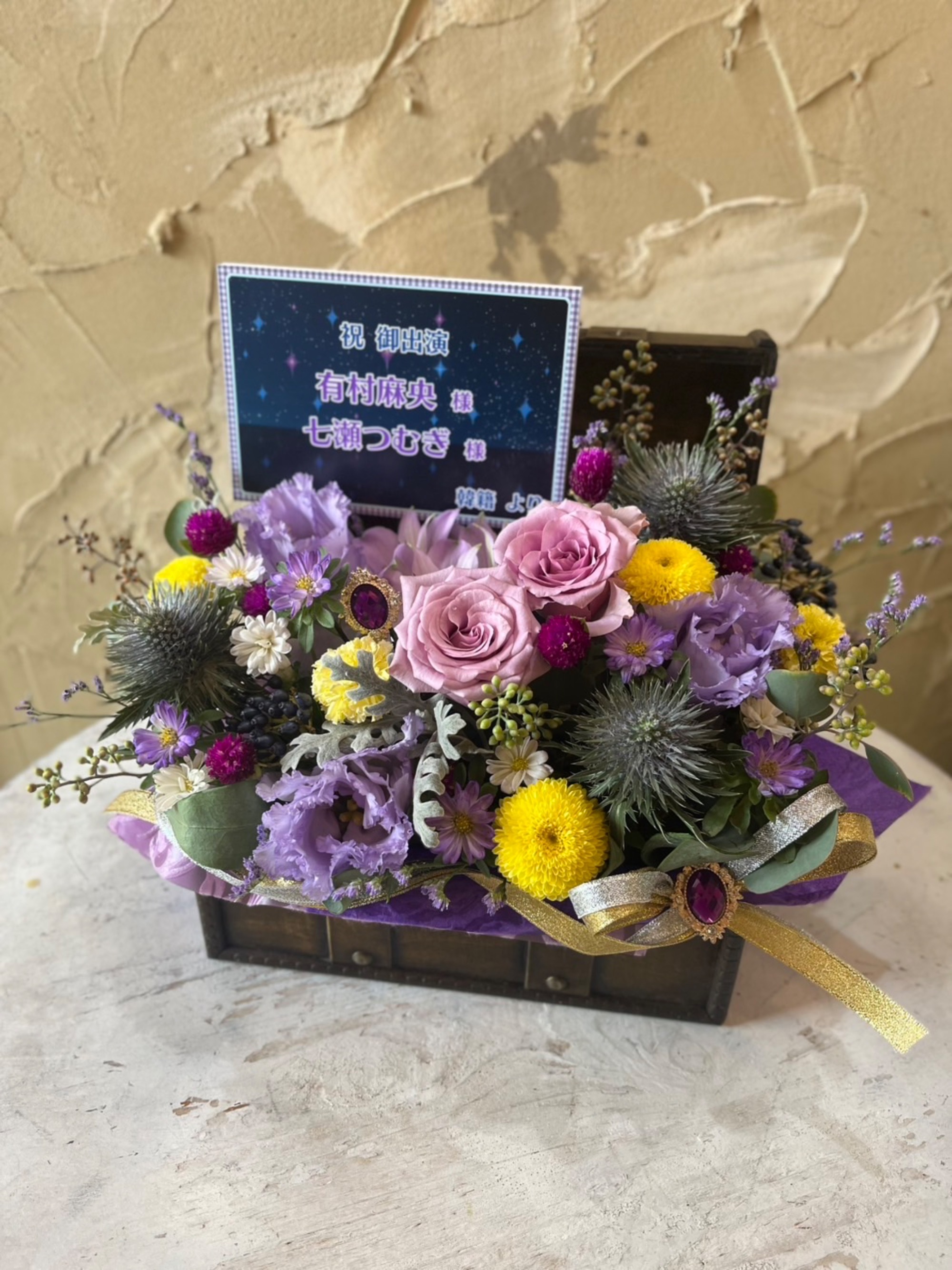 #11,000円-14,000円 #公演・出演祝い #フラワーデザイナー牧 #紫 #楽屋花 #推し花 #国立代々木競技場 #七瀬つむぎ #声優 #アイマスシリーズ #学園アイドルマスター #オリジナル立て札 #トレジャーボックス #リボン